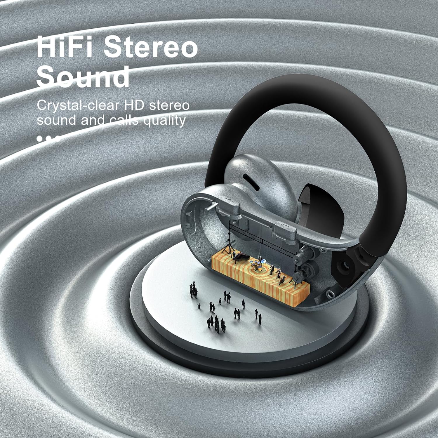 - Hi-Fi Stereo Bass & Crystal-clear Calling: The wireless headphones adopt 10mm speaker which provides stereo sound with deep bass and clear treble. You will hear clear HD stereo sound with punchy bass, reproducing your music vividly. The true wireless earbuds feature noise-canceling calls, effectively reducing background noise, creating a stable and clearer calling environment like you are communicating face to face with others.
