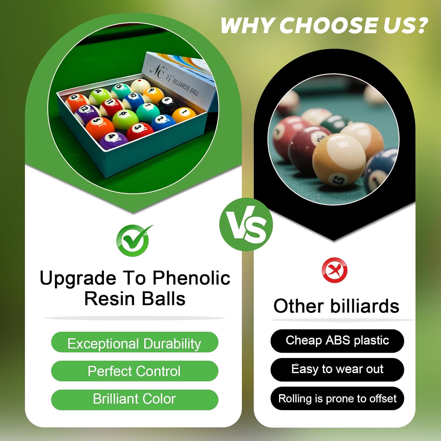 - Premium Resin Construction: Crafted from top-grade polyester resin, this pool balls set delivers exceptional durability and longevity. Engineered to meet professional standards of roundness, balance, and hardness, these balls ensure smooth rolls and consistent rebounds every time.