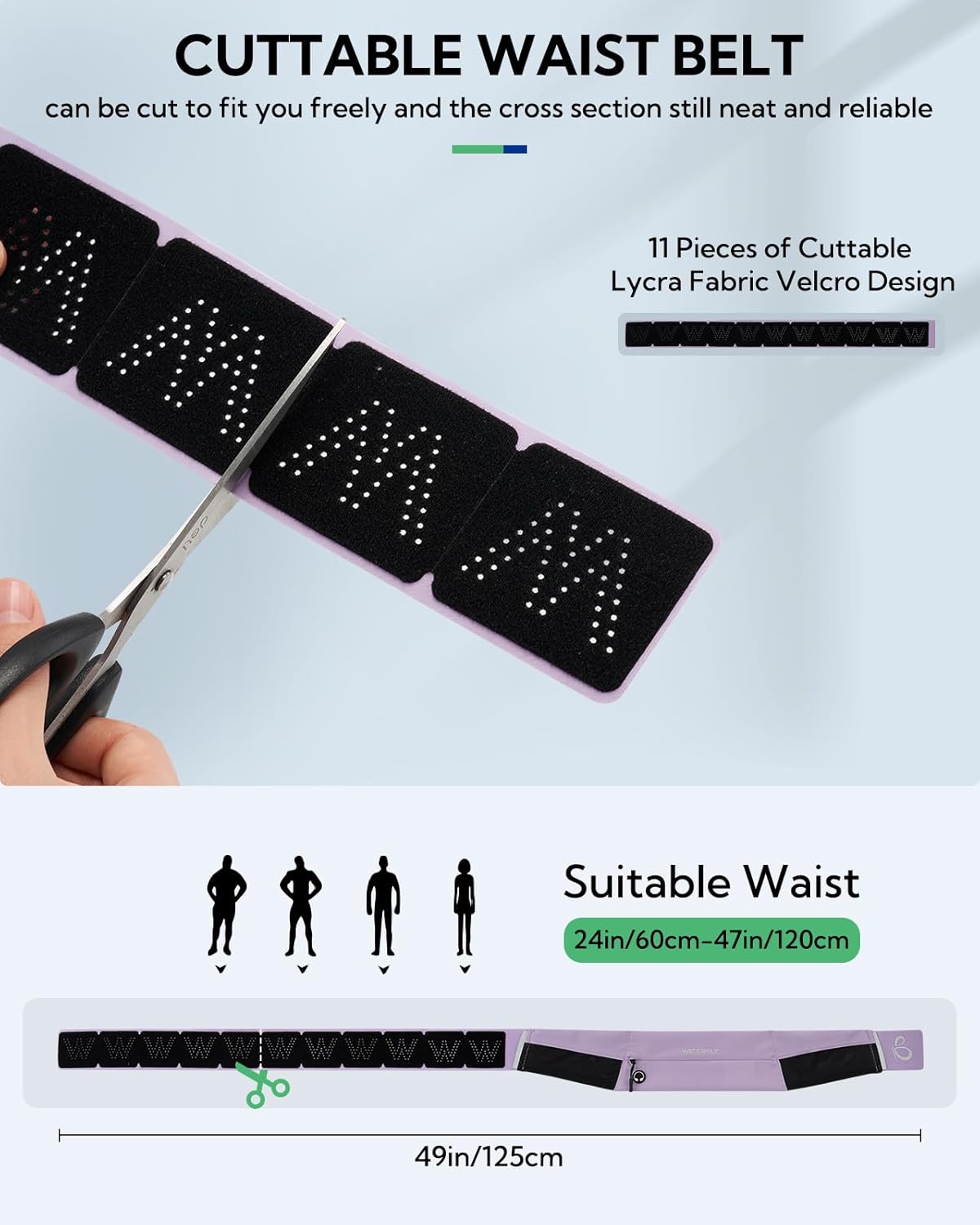 - Lycra Laminated Fabric: The waist belt features a multilayer fabric design, water-repellent and breathable, sweat-absorbing and dry, soft and skin-friendly, for a more comfortable running experience