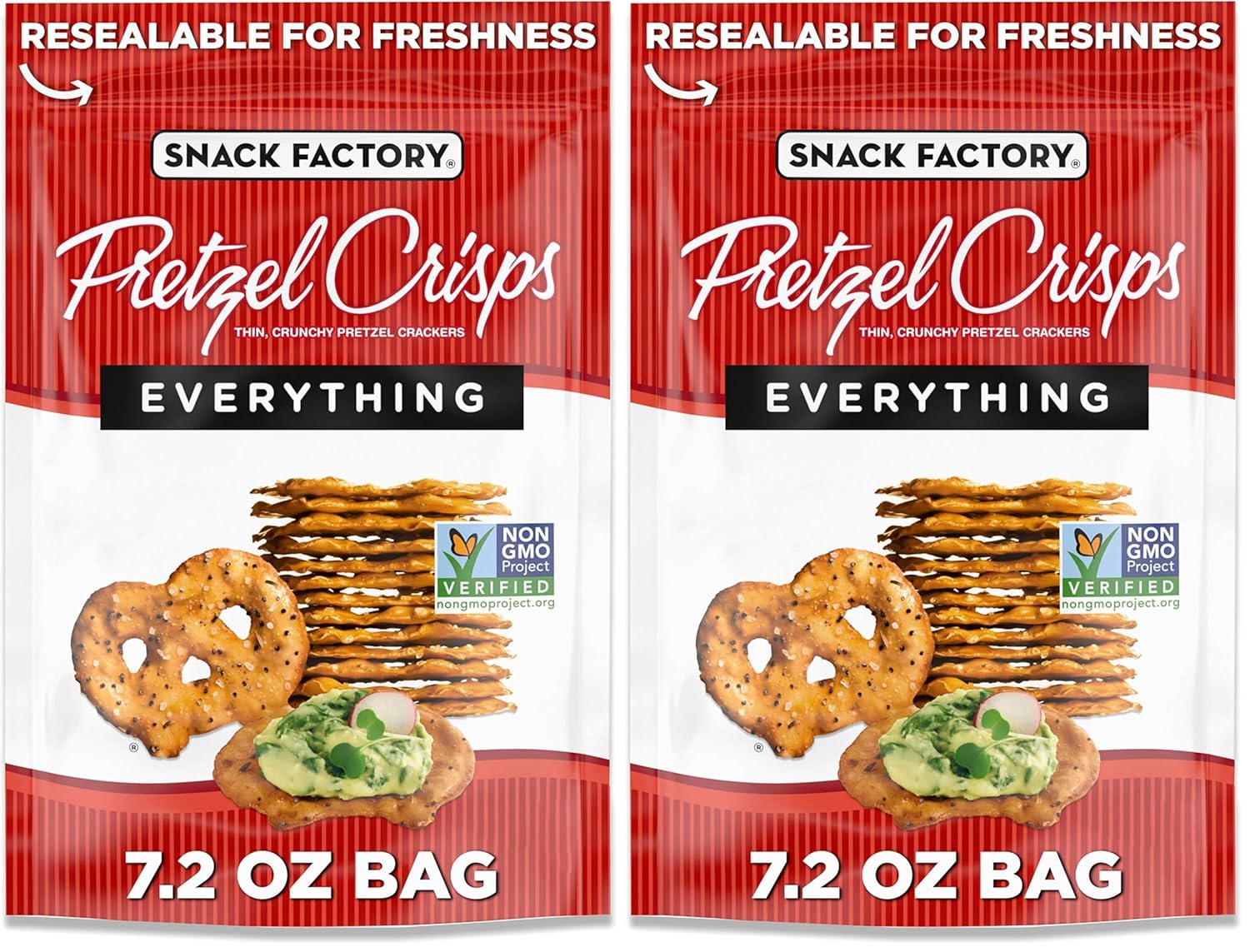 Snack Factory Everything Pretzel Crisps, Non-GMO, 7.2 OZ Resealable Bag (Pack of 2)