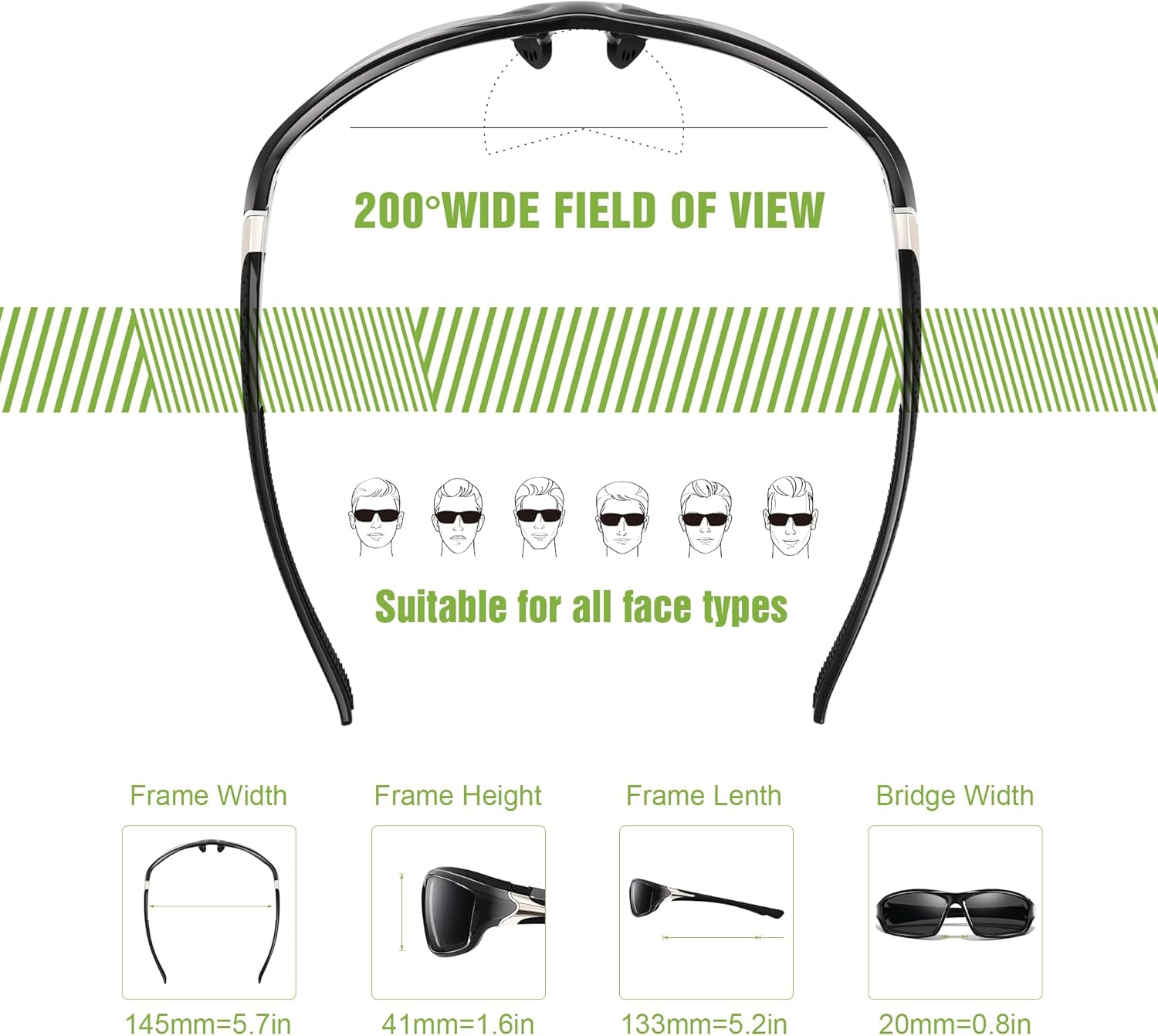 - Exquisite Packaging & Care Tips: Mens sunglasses polarized UV protection comes with mens polarized sports sunglasses*3, glasses case*1, cleaning cloth*1, glasses pouch*1, glasses strap*3, polarization test card*1, making them an ideal present for friends and family. Special Tips: To protect the integrity of the cycling sunglasses lens coating, please avoid exposing the sunglasses to extreme high temperatures, such as direct contact with hot water