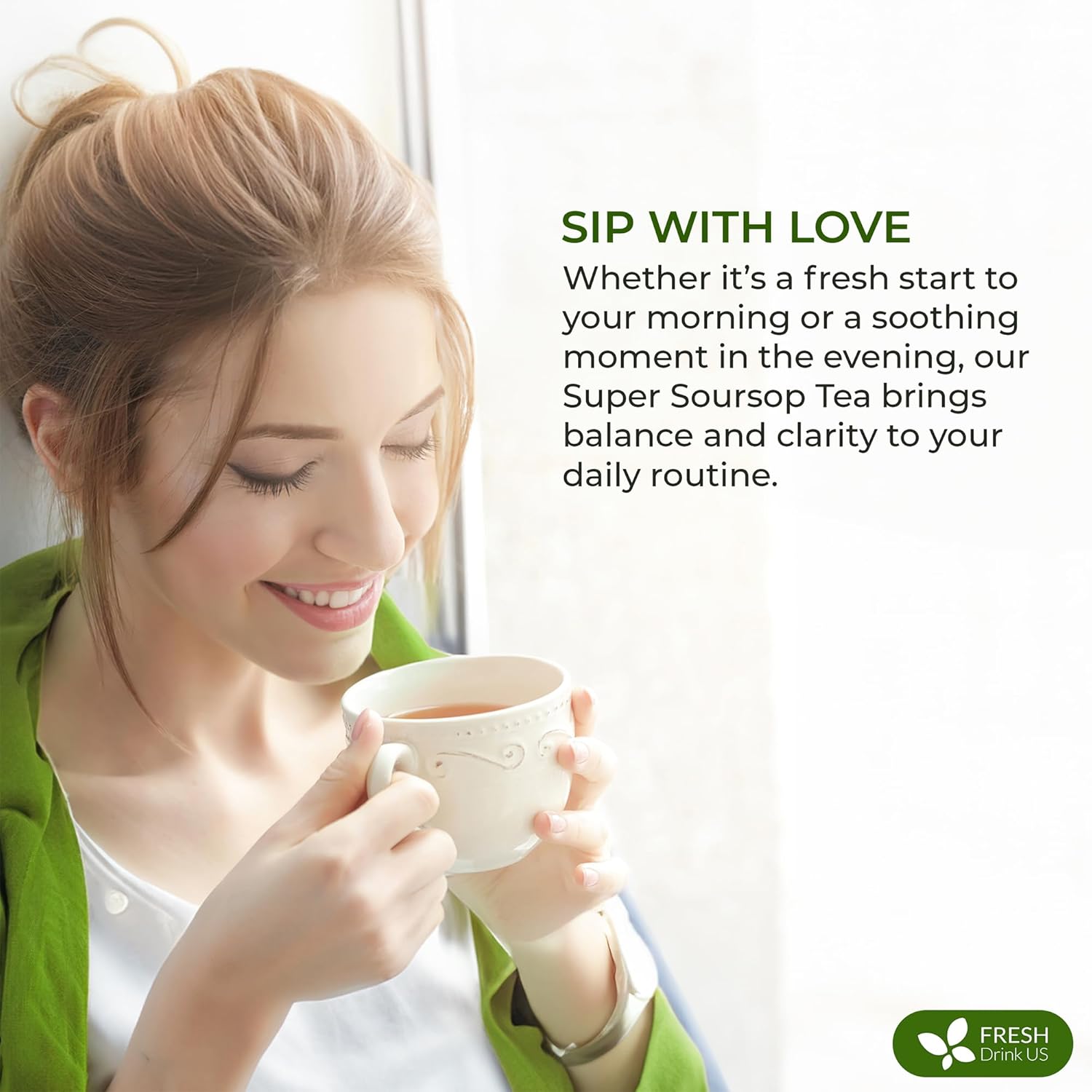FreshDrinkUS, Super Soursop Herbal Tea β 60 Tea Bags | Soursop, Ginger, Turmeric, Lemongrass, Cinnamon, Black Pepper & Peppermint | Caffeine-Free, Natural Flavor, Plant-Based Blend | Sugar-Free