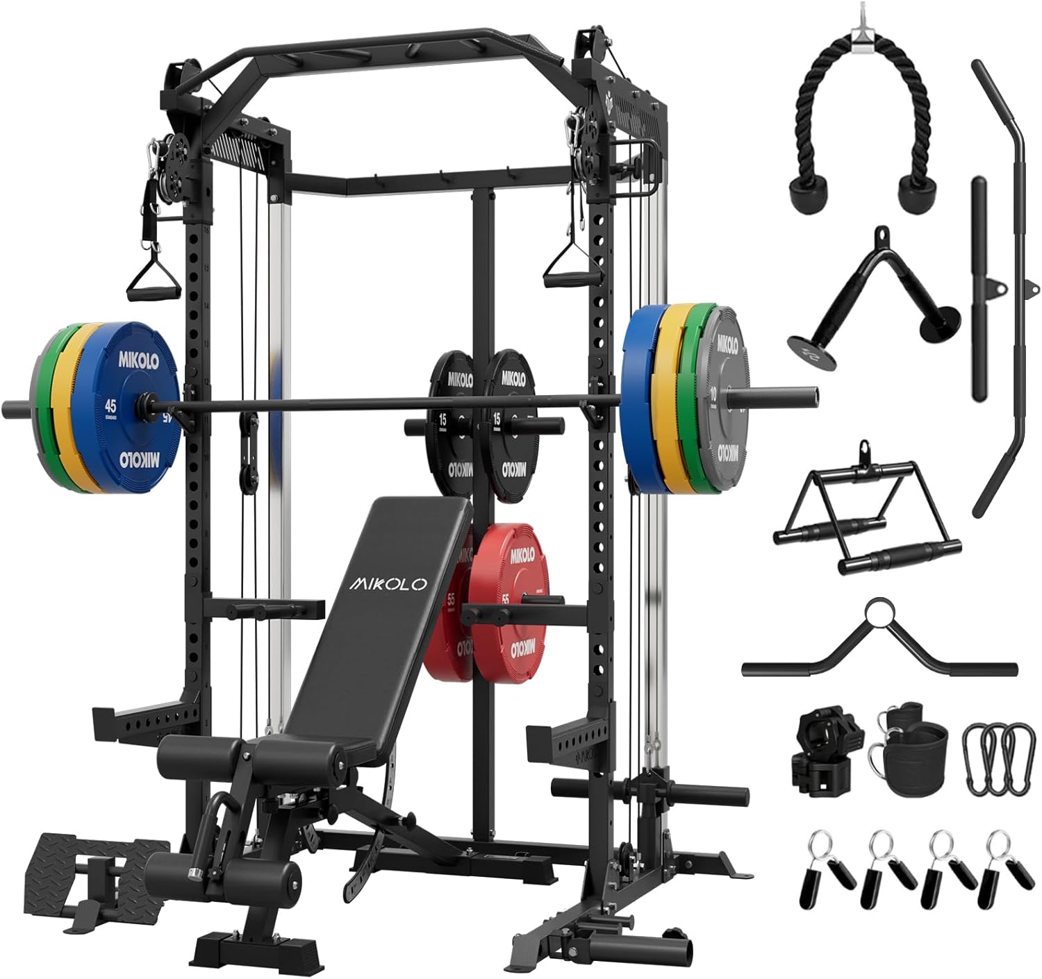 Mikolo Power Cage, 2000LB Power Rack with Independent Dual Pulley System, Multi-Function Home Gym Workout Machine for Cable Crossover