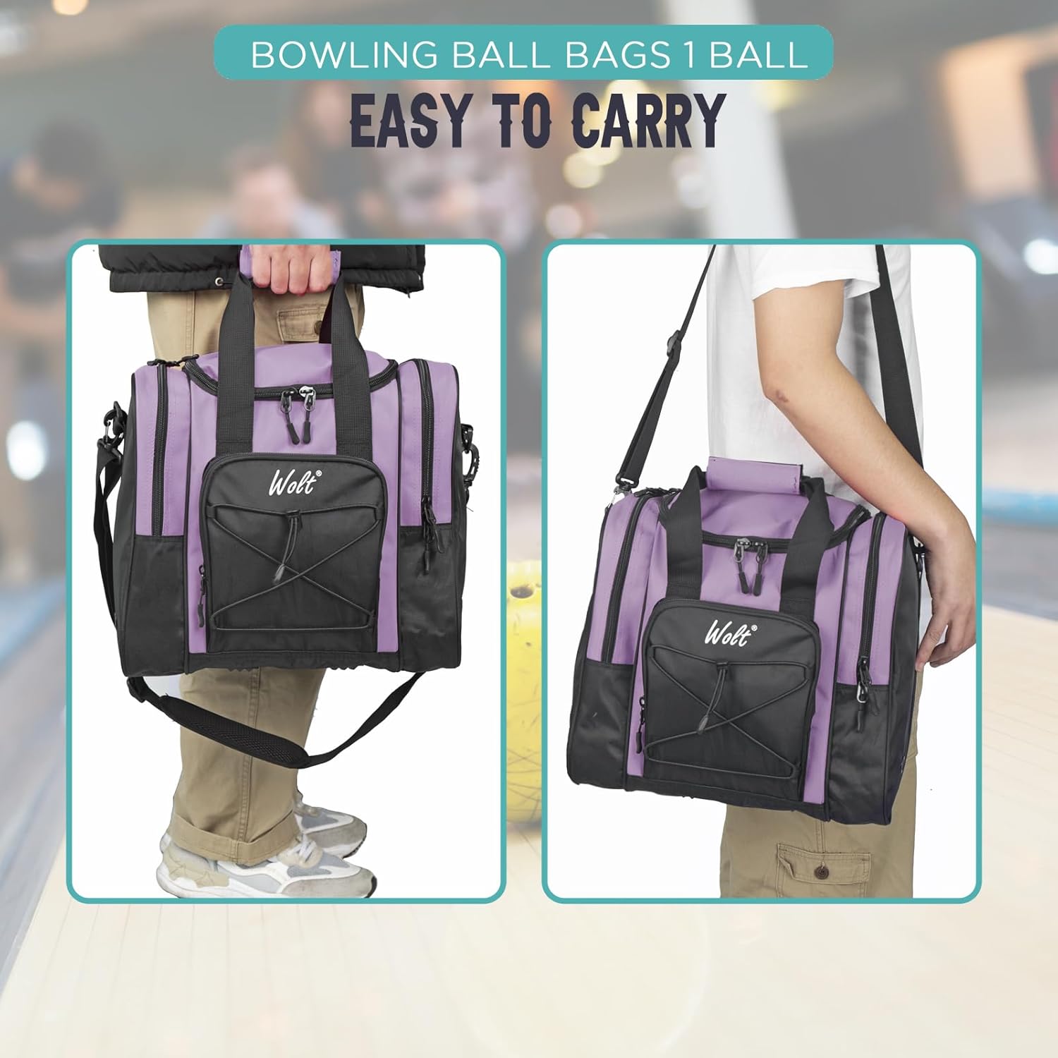 - ALL YOUR BOWLING GEAR IN ONE BAG : Wolt Bowling Ball Bag is large enough to carry all your bowling accessories & equipment, 1 * main compartment fit 1 ball, 2 * side pockets with ventilation vents, 1 * front pocket, 1 * elastic cord