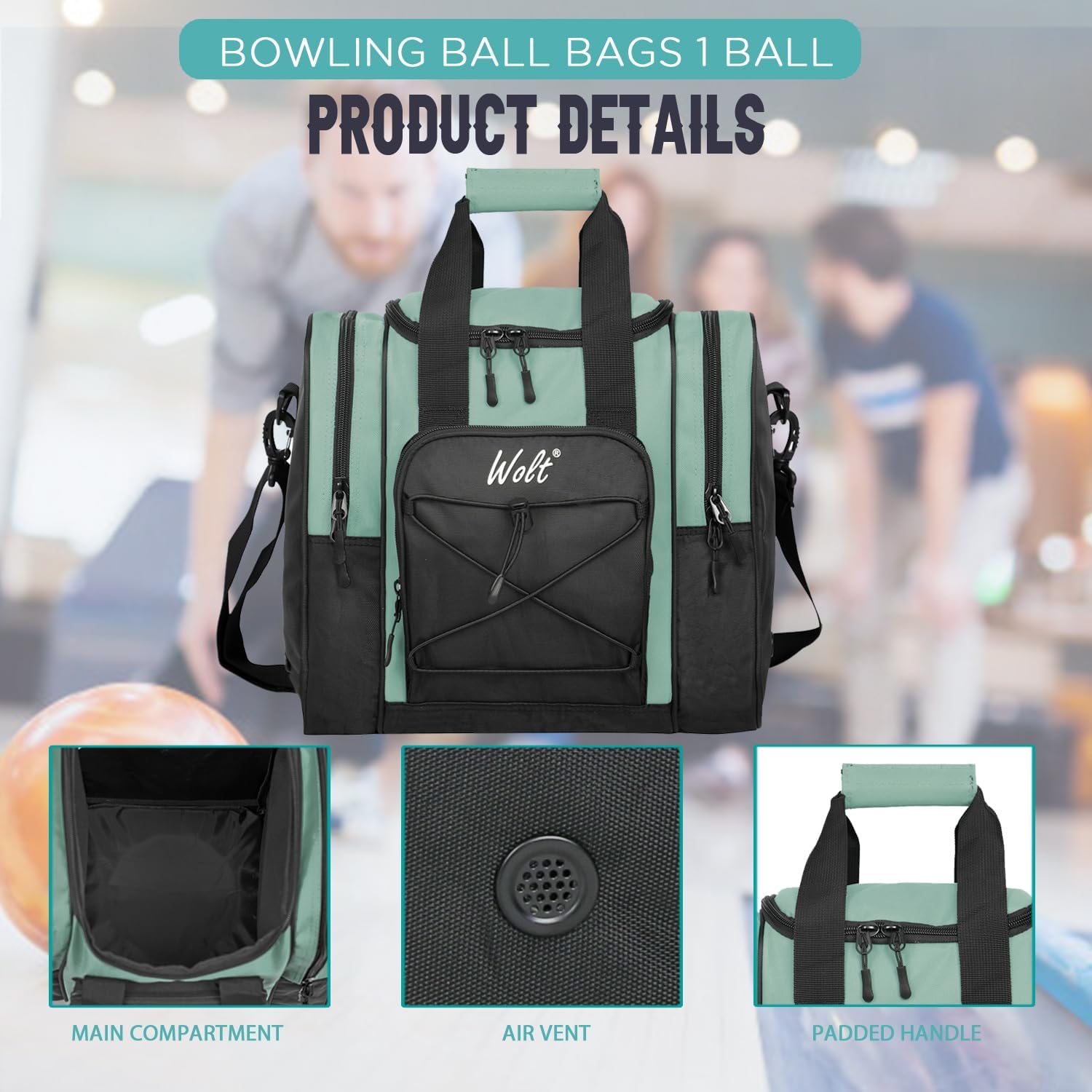 - ALL YOUR BOWLING GEAR IN ONE BAG : Wolt Bowling Ball Bag is large enough to carry all your bowling accessories & equipment, 1 * main compartment fit 1 ball, 2 * side pockets with ventilation vents, 1 * front pocket, 1 * elastic cord