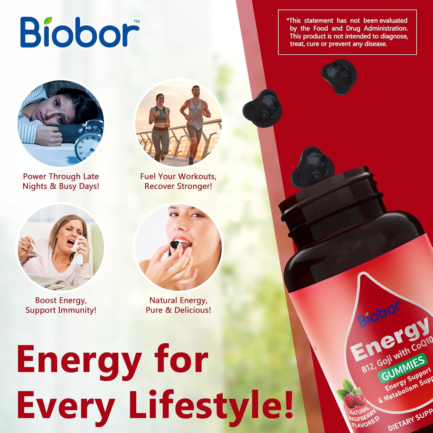 - Boost Your Energy Naturally β Our Natural Energy Gummies combine Vitamin B12, Goji, and CoQ10 to provide a powerful, natural energy boost, helping you feel more alert and energized throughout the day