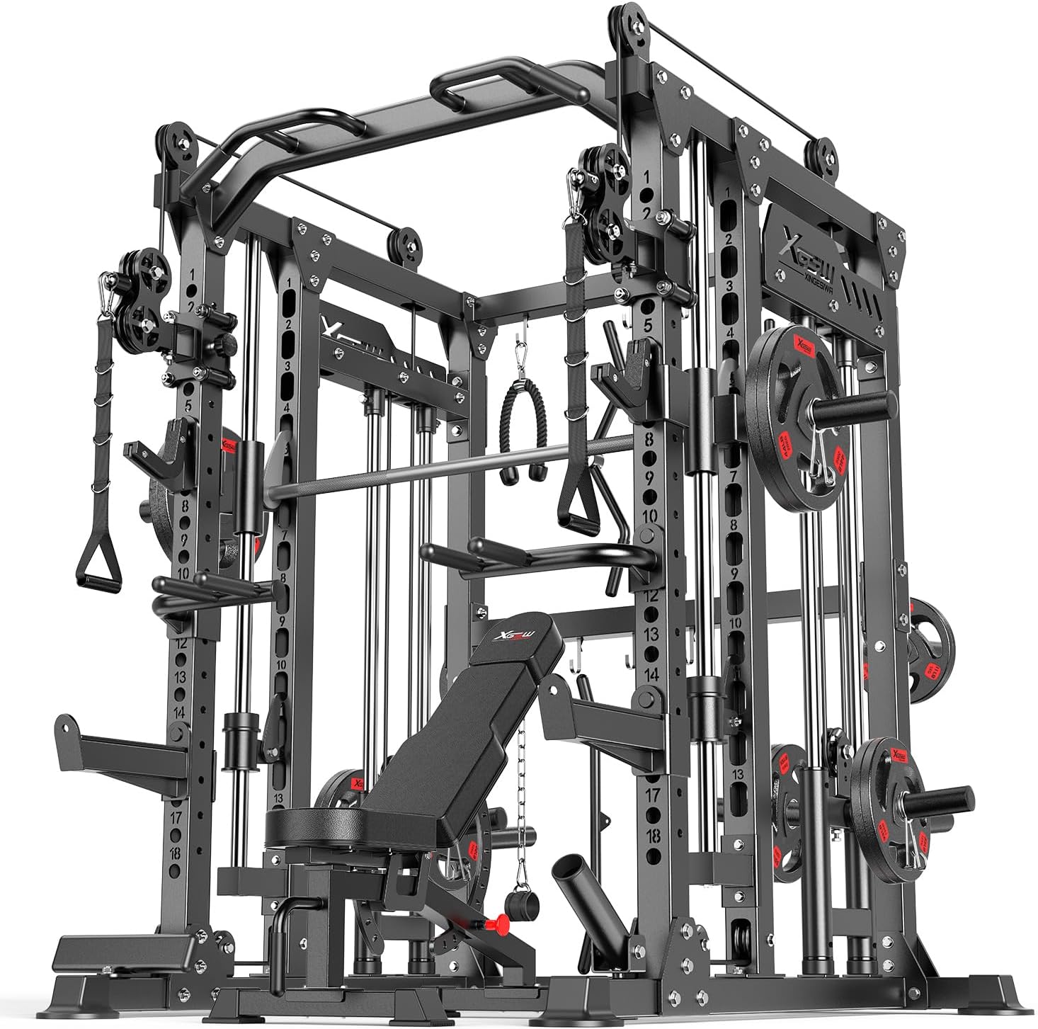 - The L04 Smith Exerciser is a powerful workout machine that combines a variety of fitness equipment such as pulldowns, seated cable rowing, cable crossovers, half racks, squats and pull-up stations. You can do a full body workout at home and it will fulfill your desired fitness needs.