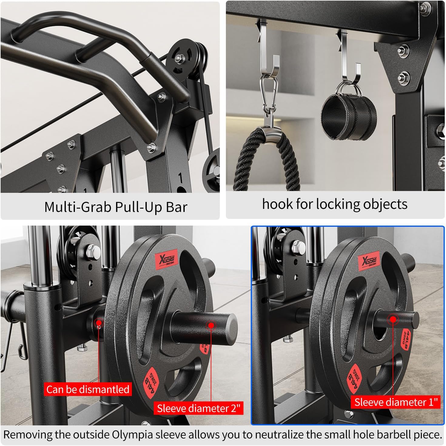 • The L04 Smith Exerciser is a powerful workout machine that combines a variety of fitness equipment such as pulldowns, seated cable rowing, cable crossovers, half racks, squats and pull-up stations. You can do a full body workout at home and it will fulfill your desired fitness needs.