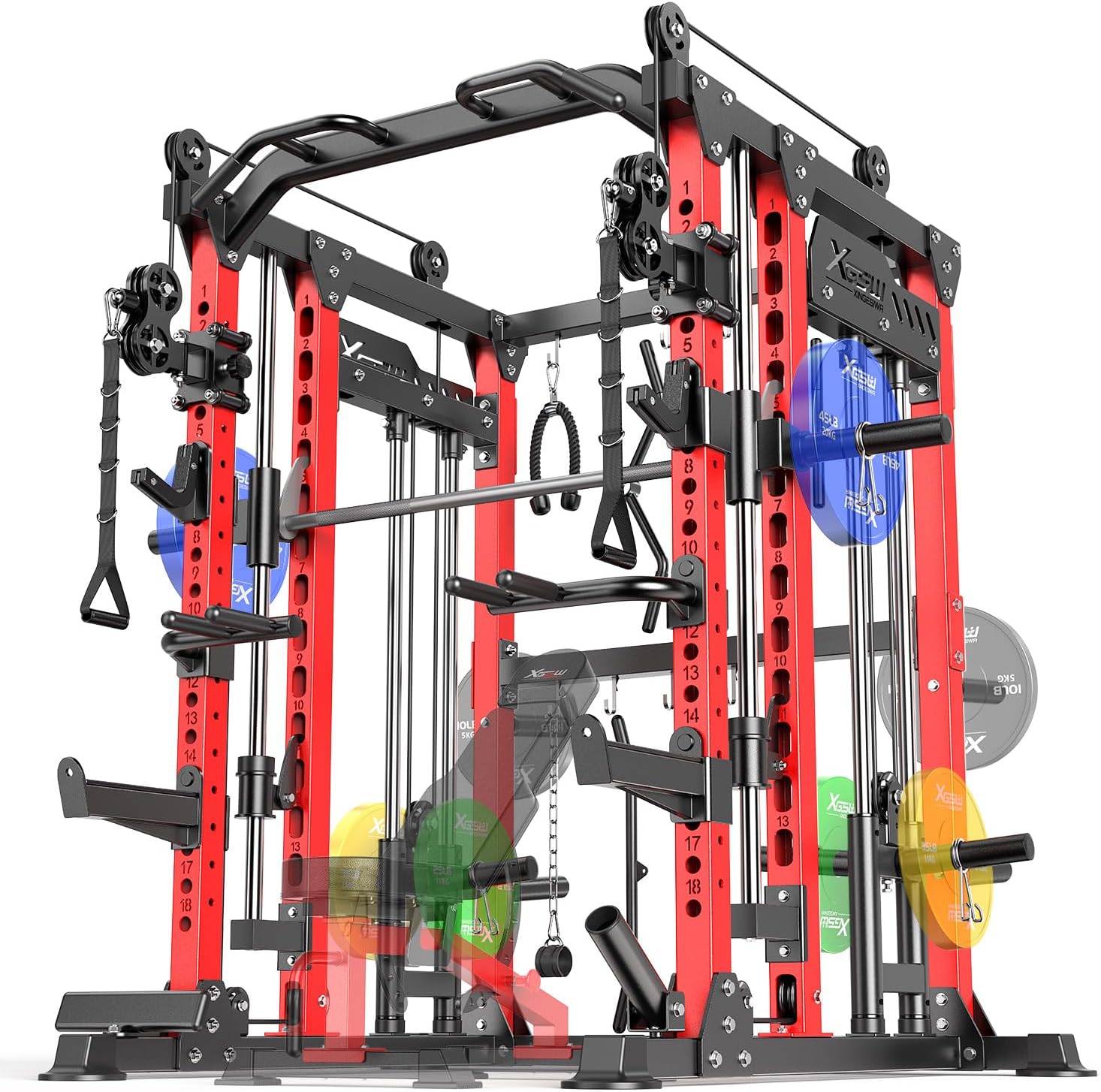- The L04 Smith Exerciser is a powerful workout machine that combines a variety of fitness equipment such as pulldowns, seated cable rowing, cable crossovers, half racks, squats and pull-up stations. You can do a full body workout at home and it will fulfill your desired fitness needs.
