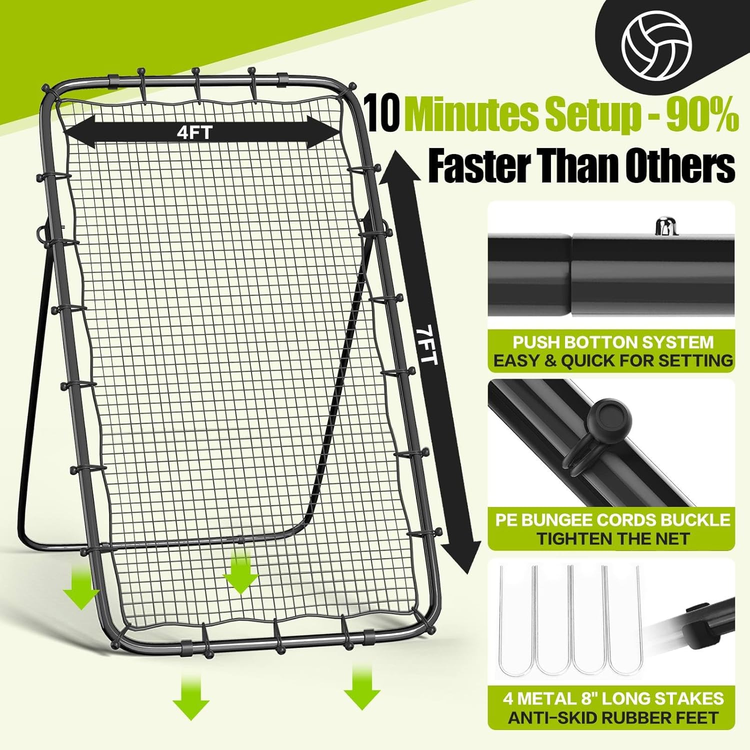 - 5 ADJUSTABLE ANGLES - 3 SECONDS CUSTOMIZATION: This rebounder for volleyball features 5 adjustable angles, only takes 3 seconds to switch between angles which perfectly replicate game scenarios to help you practice the skills in different angles. Whether you’re working on spiking, passing, serving, or digging, this rebound net for volleyball adapts to your training needs and helps you get the most out of every session.