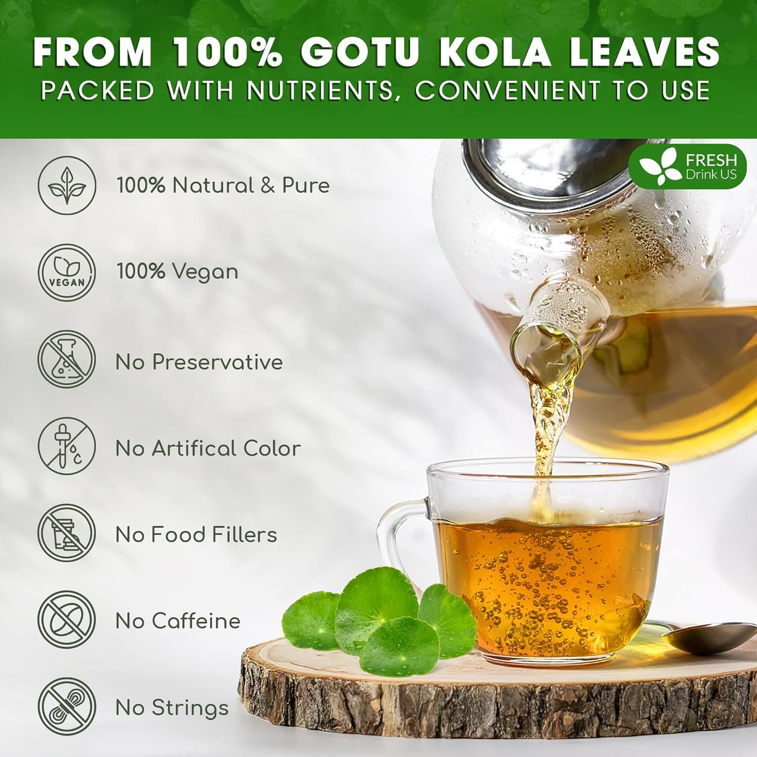 FreshDrinkUS, Premium Gotu Kola Leaf Tea – 75 Tea Bags | Pure Dried Centella Asiatica Leaves | Naturally Caffeine-Free Herbal Tea | Refreshing Aroma & Smooth Taste | Premium Herbal Infusion. Vegan