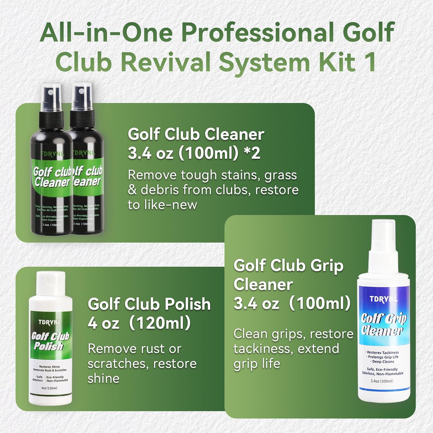 - 【7-Piece Pro Golf Club Cleaning Kit – All-in-One Solution】Our golf club cleaning kit includes every essential: Golf Club Cleaner, Golf Club Polish, Golf Grip Cleaner, Dual-Sided Golf Brush and Groove Cleaner, Premium Magnetic Towel, Golf Club Groove Sharpener, and Leather Valuables Bag. Unlike basic sets, this complete golf cleaning kit covers full care for irons, drivers, putters—no extra tools needed. It’s your go-to golf club care kit