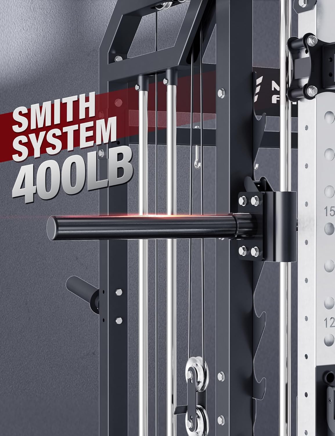 Major Fitness Smith△ Machine Drone2 Premium, All-in-One Home Gym Squat Rack with Aluminum Pulley Set , Weight Bar, Dual LAT Pull-Down Systems & Cable Crossover Machine for Full-Body Workouts