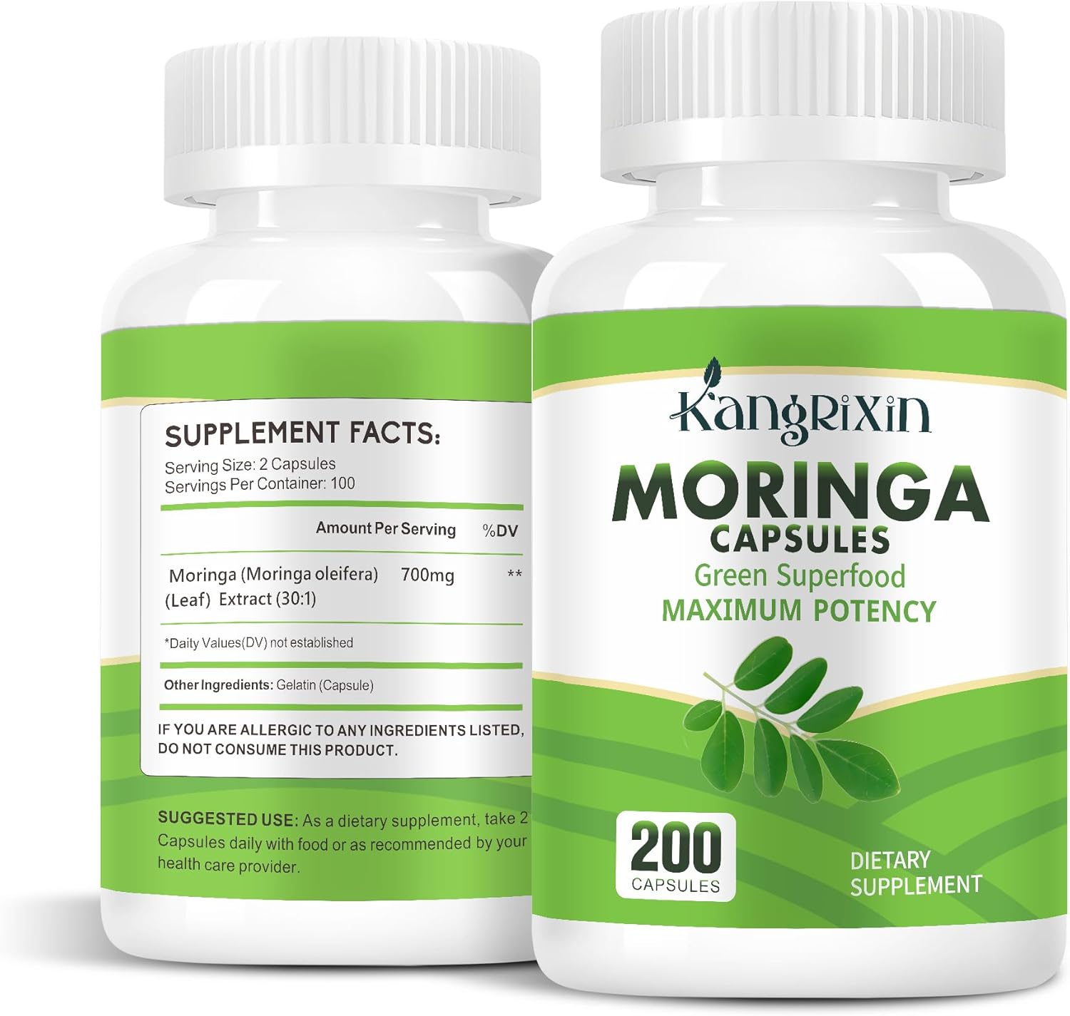 - 𝟮𝟬𝟬 𝗖𝗮𝗽𝘀𝘂𝗹𝗲𝘀: Moringa supplement each bottle contains a bulk supply of 200 capsules with 100 days supply. Adults can take 2 capsules once daily after meals. Adjust your intake based on your body's needs. If you are on any medication, pregnant, or nursing, we recommend consulting with a doctor before use