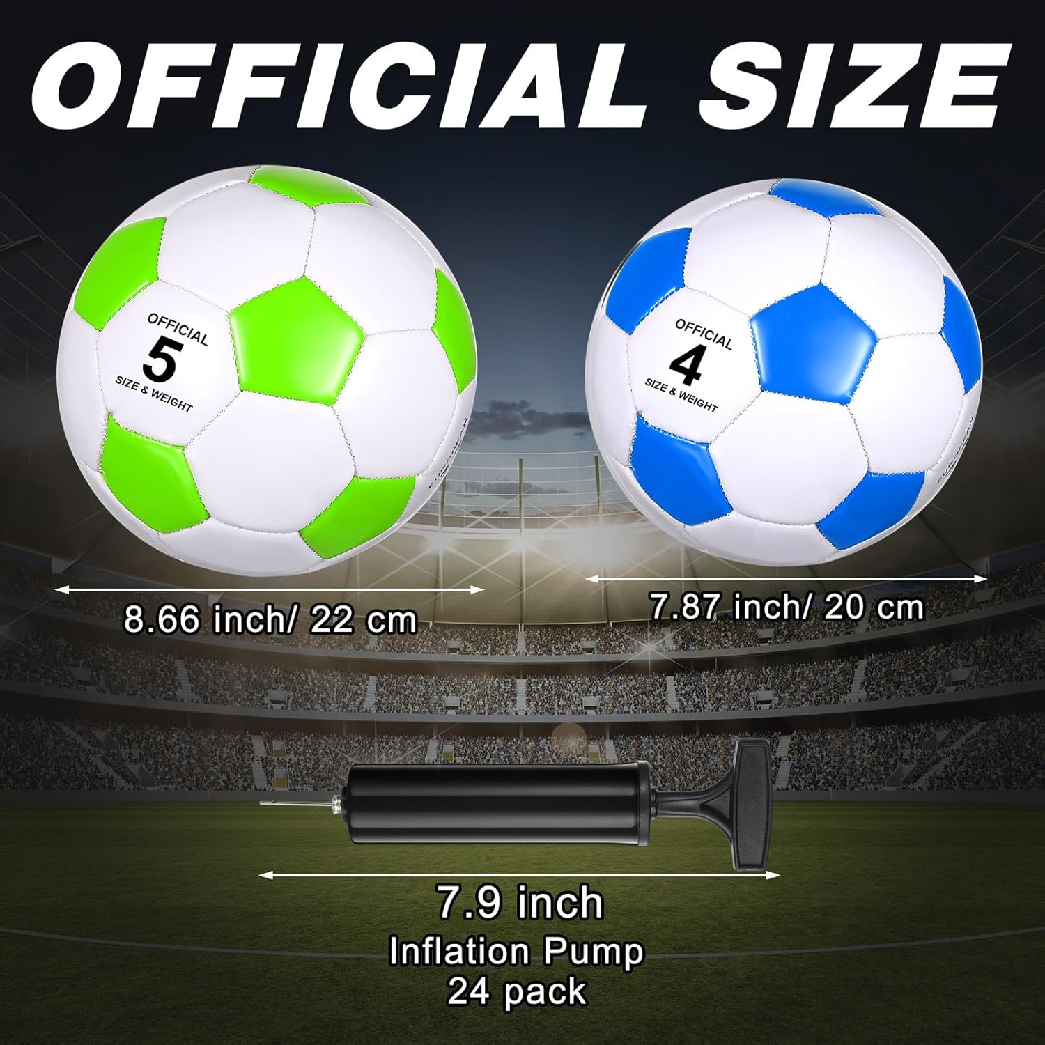 - Nice Soccer Ball Set: the package includes 24 soccer balls and 24 pumps with needle, it's ideal for football game playing, training, practice or entertainment, you can also give it as a gift to your friends, family; Please note that the ball is transported in a deflated state, please inflate it after receiving it