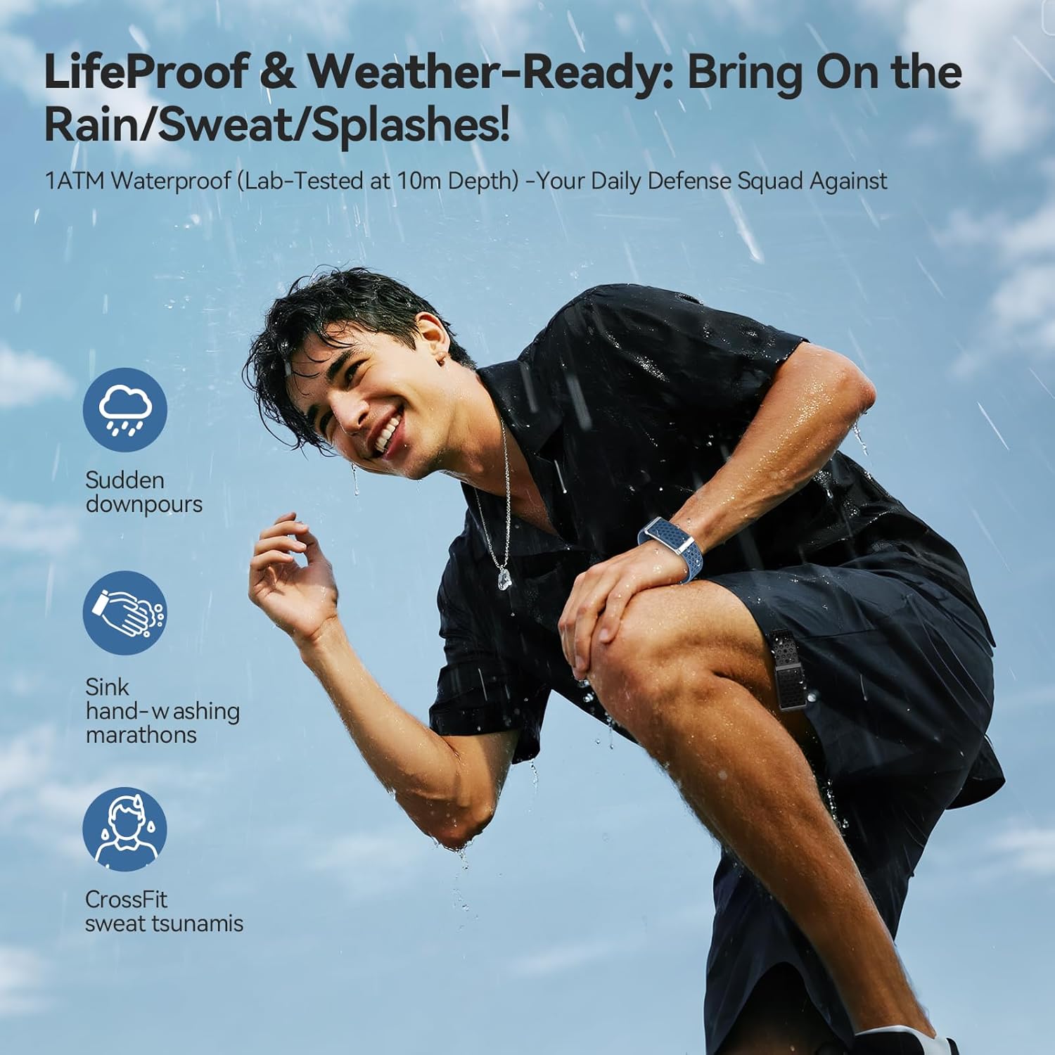 - 45-DAY BATTERY & WATERPROOF—Ultra-long battery: 45-60 days standby, 20-30 days regular use (3x industry standard). Single charge lasts 30 days - ideal for travel/camping. 1ATM waterproof (10m depth) handles rain/sweat/handwashing. Live freely without charging worries. (Avoid hot water immersion)