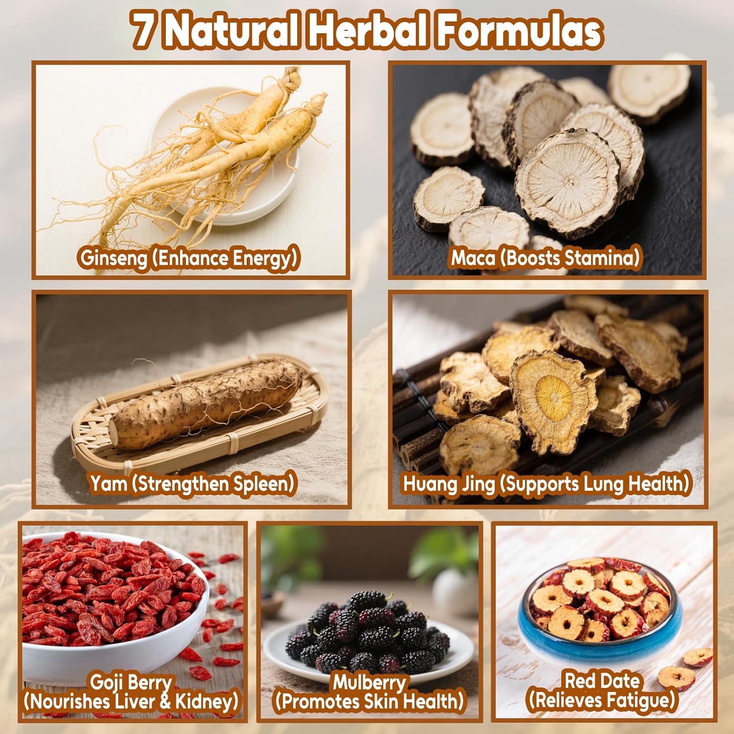 - Straight from Nature: Our ginseng six treasure tea is crafted from premium ginseng, huangjing, mulberry, maca, goji berry, red dates, and yam, delivering the freshest and most flavorful brew