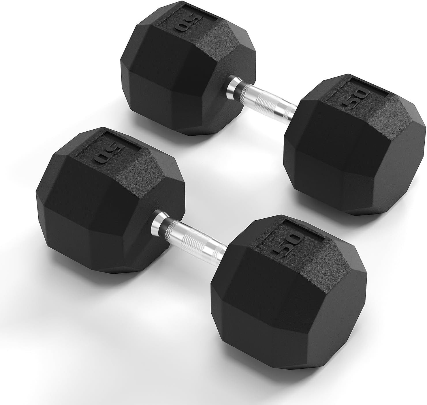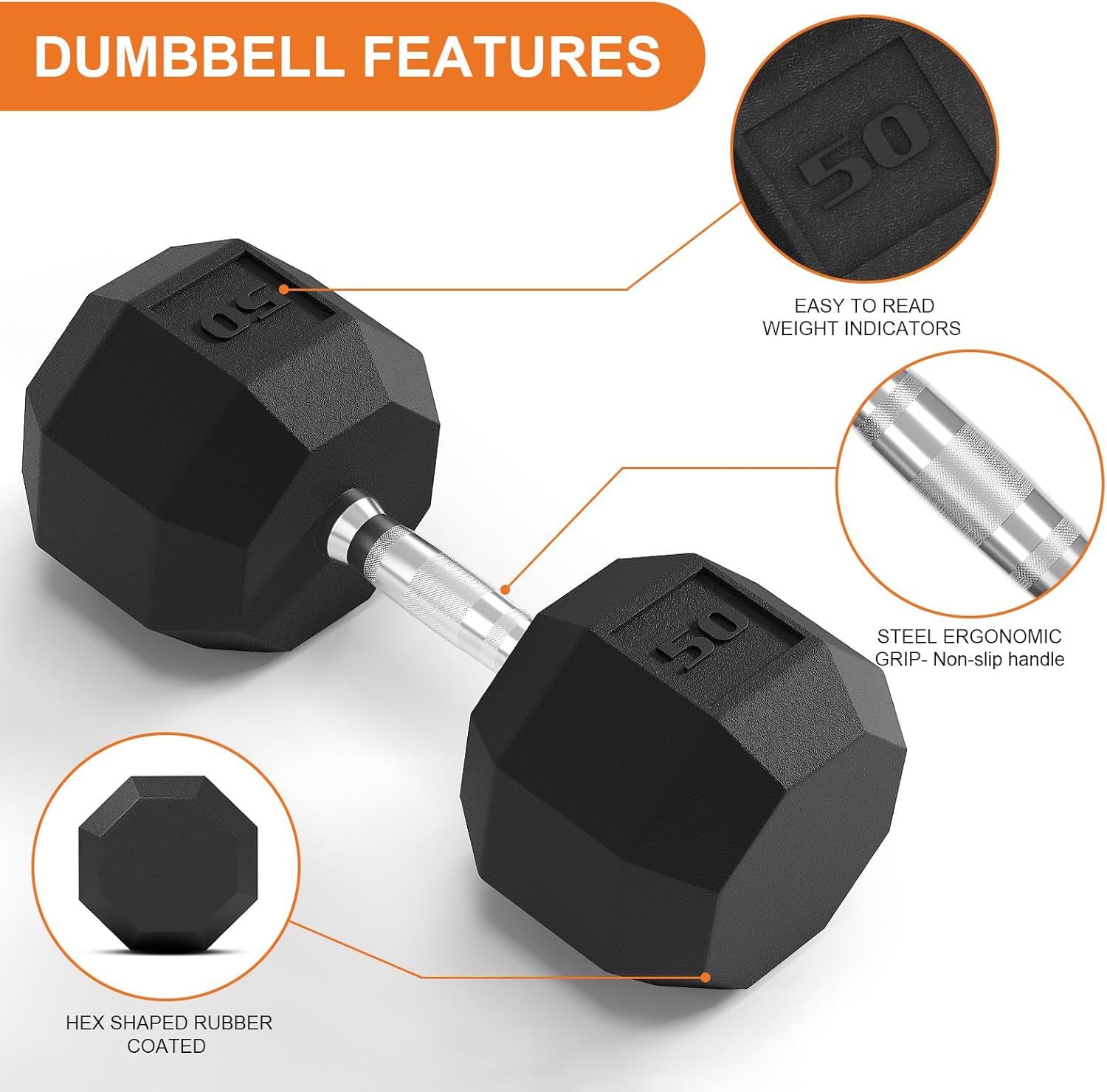 Rubber Coated Hex Dumbbell Weight Set, Multiple Sizes Exercise & Fitness Dumbbells,100LB Set,110LB Set,200LB,350LB,450LB,550LB, 35-50Lbs Pairs for Muscle Toning, Strength Building & Full Body Workout
