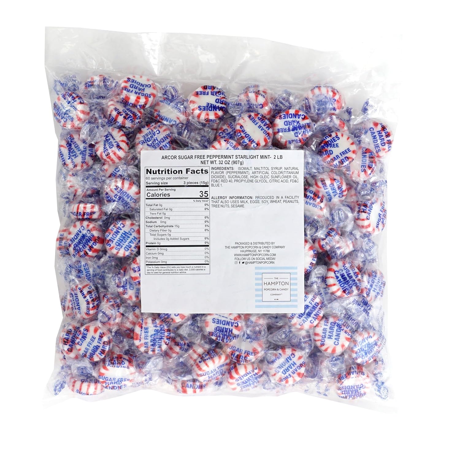 - Our 2lb bulk bag (Approx 140 Pieces) of sugar-free peppermint starlight candy offers unbeatable value, keeping your favorite treats ready for any moment.