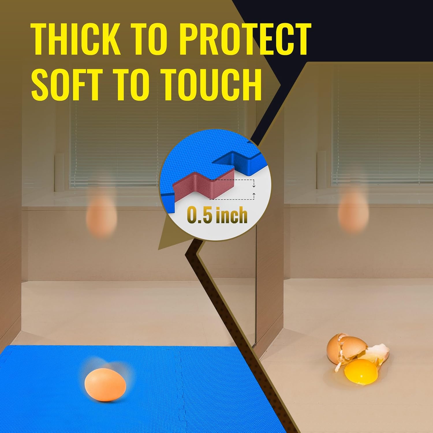 - Floor Guardian: Each interlocking floor mat is 0.5 inches thick, providing a safe surface that protects you from injuries during intense workouts and prevents kids from getting hurt while playing. Whether you’re using dumbbells, treadmills, or any aerobic equipment, the high-quality cushioning effectively reduces friction and impact, protecting both your floor and your fitness gear