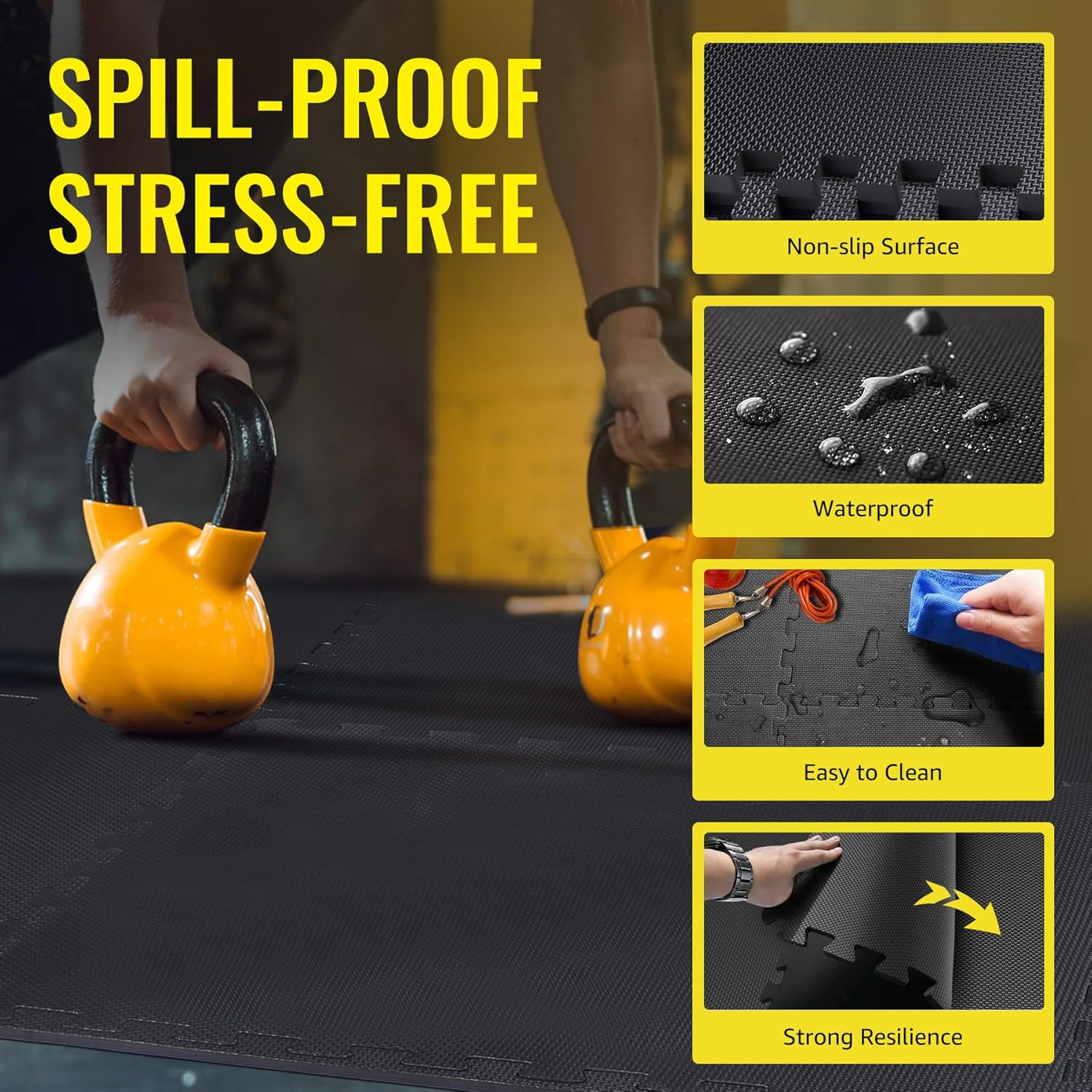 - Noise-Reducing Foam Layer: The soft foam layer offers great support and shock absorption, effectively reducing noise and vibration. You can focus on your home workouts without worrying about the sounds from dropping equipment, creating a quiet and comfortable exercise environment