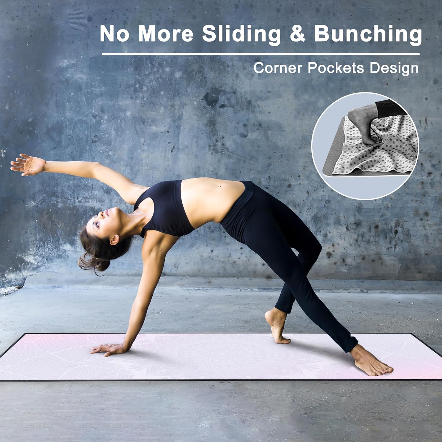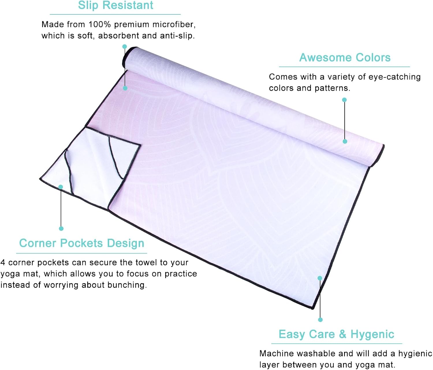 - Corner Pockets Design: Features 4 corner pockets on the backside, the non slip yoga mat towel helps secure and hold onto the mat firmly. This allows you to focus your mind, body and breath on the yoga practice, without worrying about bunching.