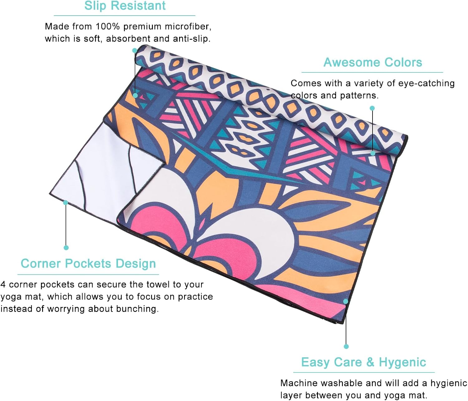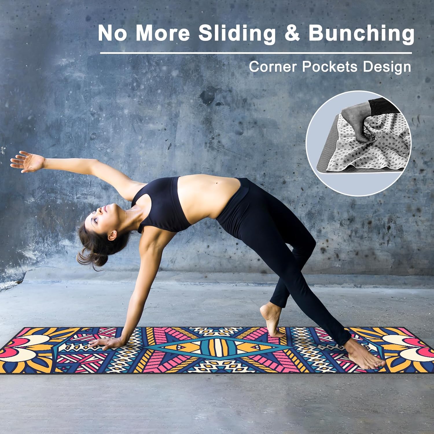 - Corner Pockets Design: Features 4 corner pockets on the backside, the non slip yoga mat towel helps secure and hold onto the mat firmly. This allows you to focus your mind, body and breath on the yoga practice, without worrying about bunching.
