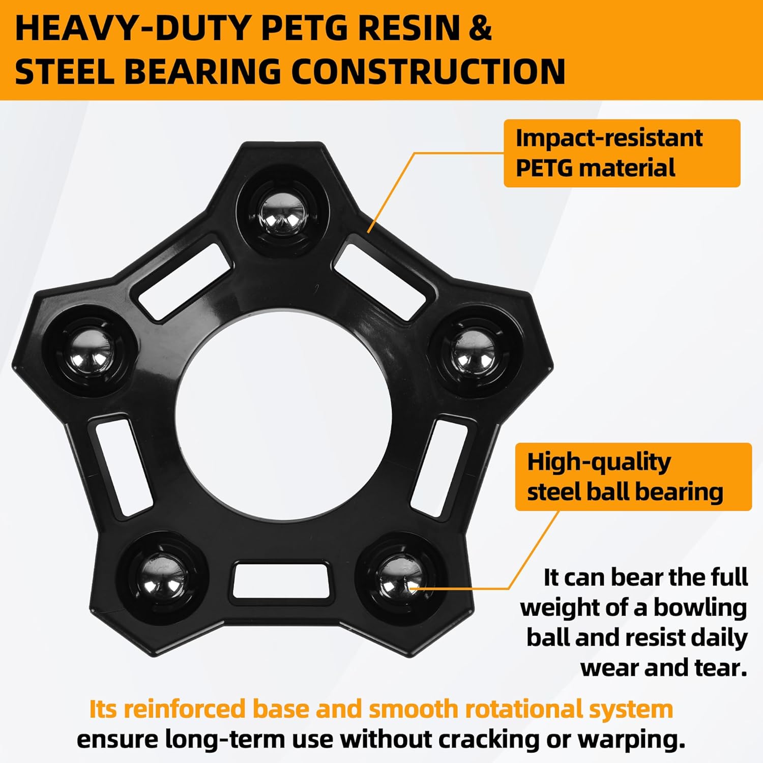 - Heavy-Duty PETG Resin & Steel Bearing Construction - Built with impact-resistant PETG material and high-quality steel ball bearings, this durable bowling spinner can withstand the full weight of your bowling ball and resist daily wear and tear. Its reinforced base and smooth rotational system ensure long-term use without cracking or warping.