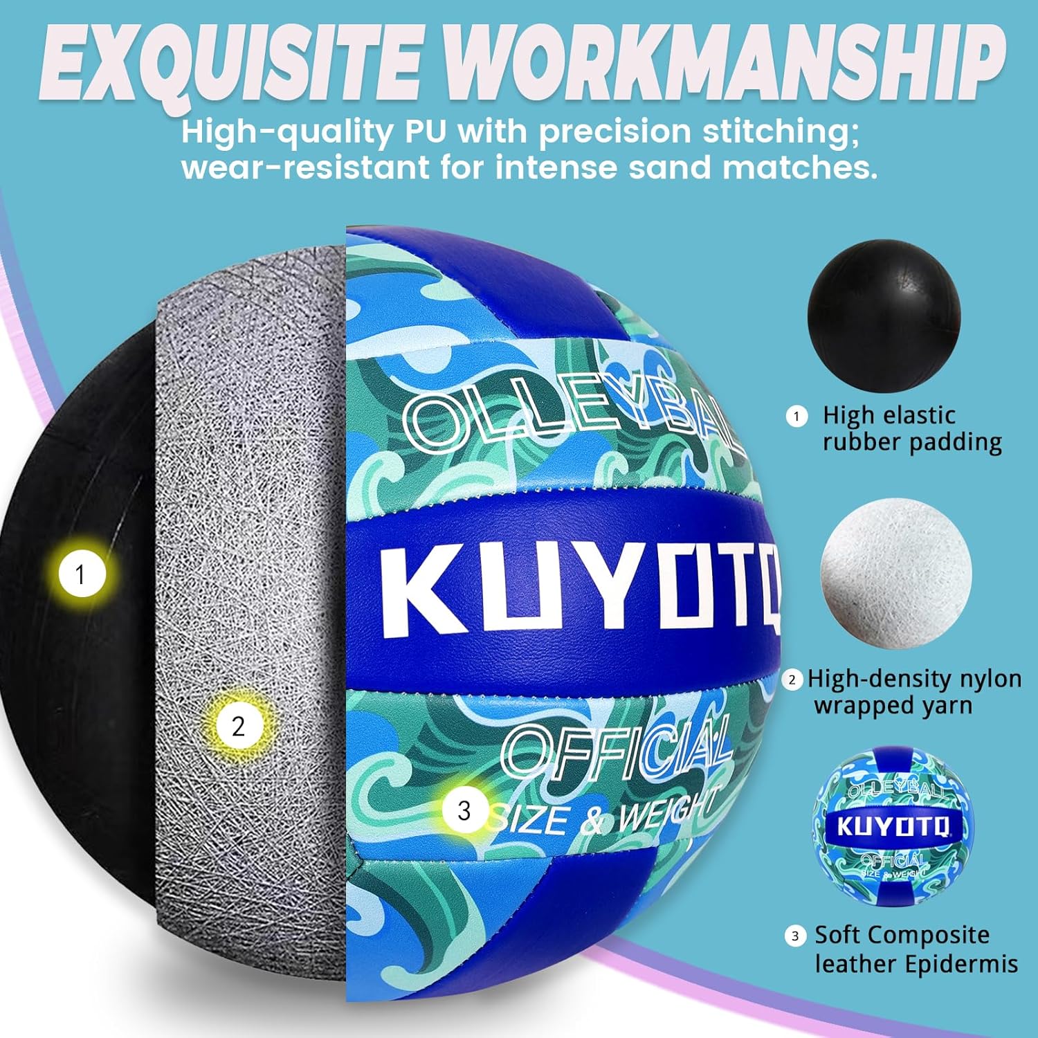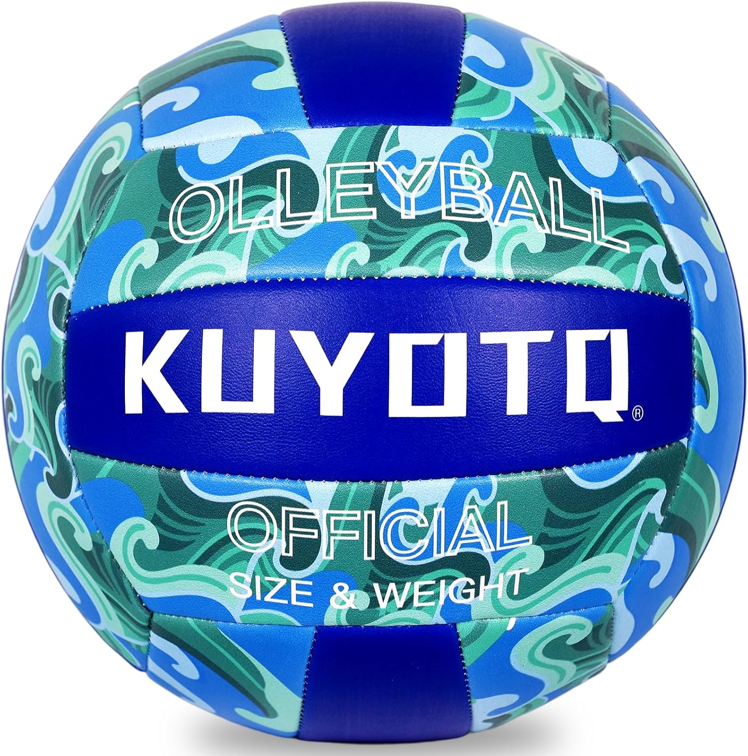 KUYOTQ Official Size 5 in&Outdoor Beach Volleyball,3MM Thickened Surface Soft Leather Youth Womens Mens Volleyball for Game Gym Training(Deflated) (Blue-Wave)