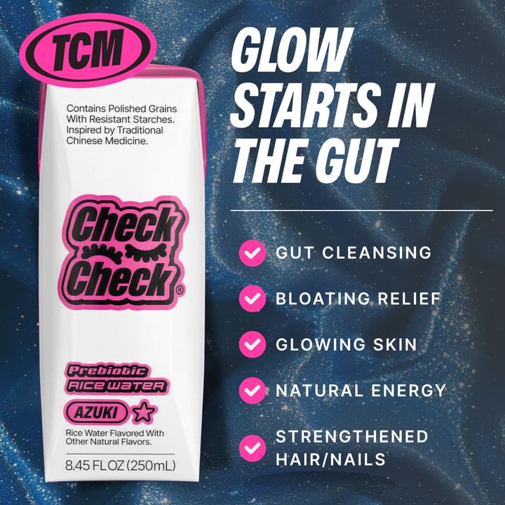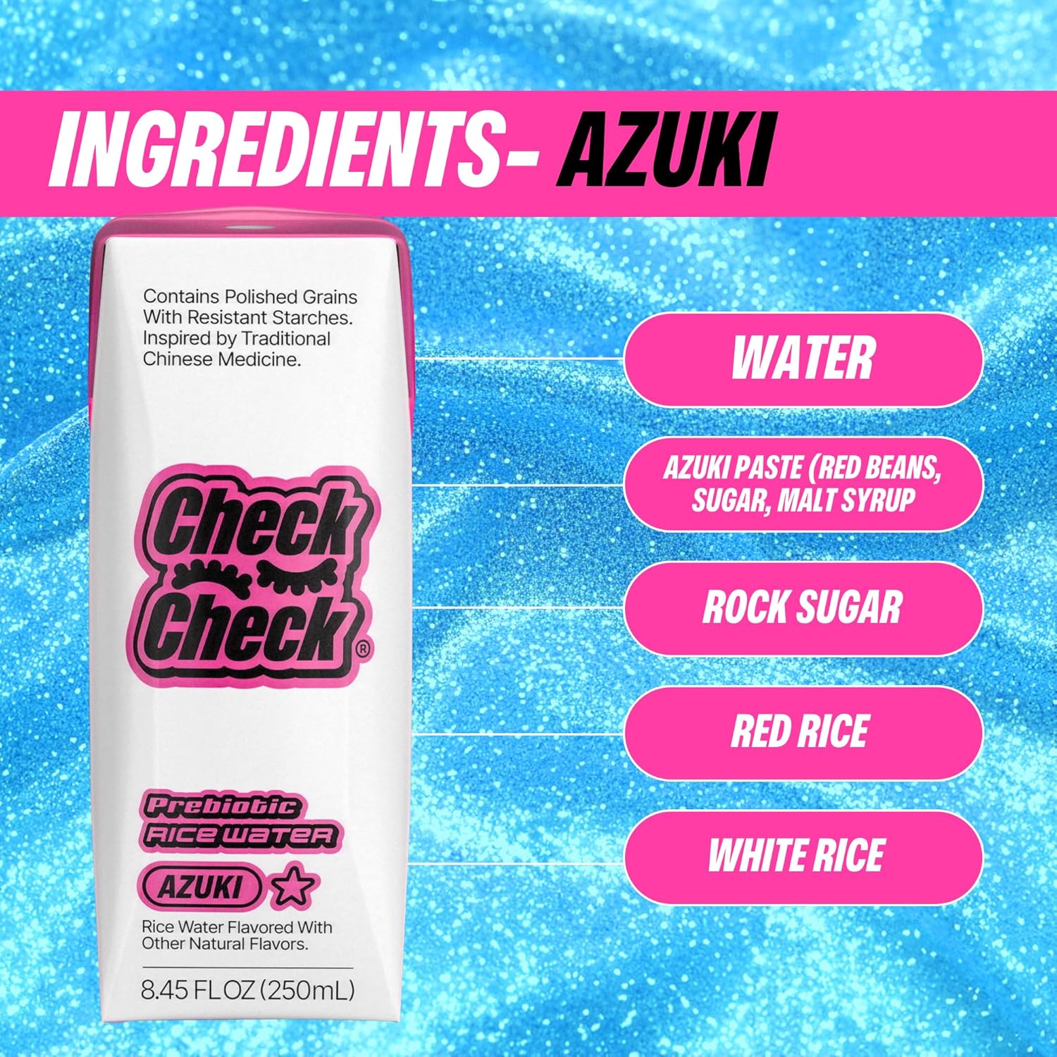 CheckCheck Prebiotic Rice Water, Dawn, Dusk, and Azuki, 12 Pack, 8.45 fl oz Bottles (12 Pack, Azuki)