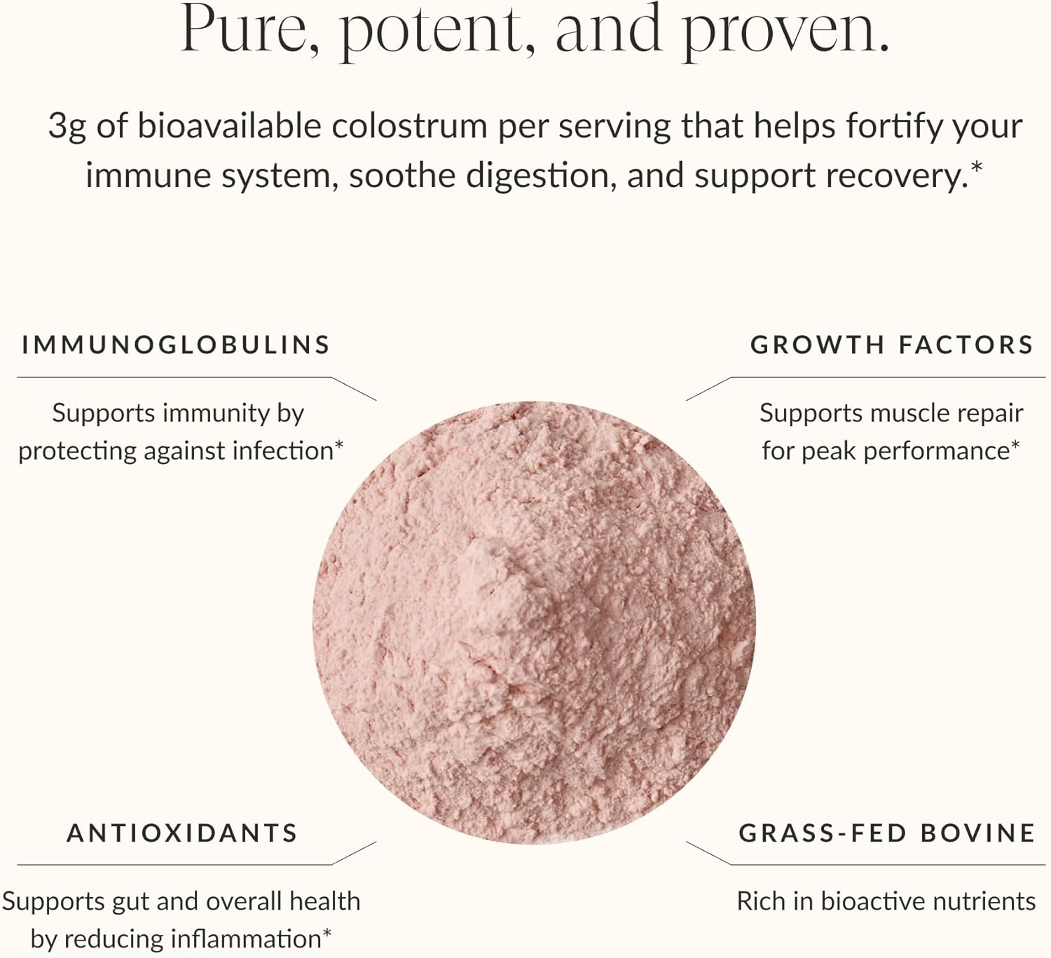 - POWERED BY IMMUNOGLOBULINS & GROWTH FACTORS – Sourced from grass-fed cows and third-party tested, Beam Colostrum is rich in IgG antibodies and growth factors shown to help protect against illness and support peak performance.*