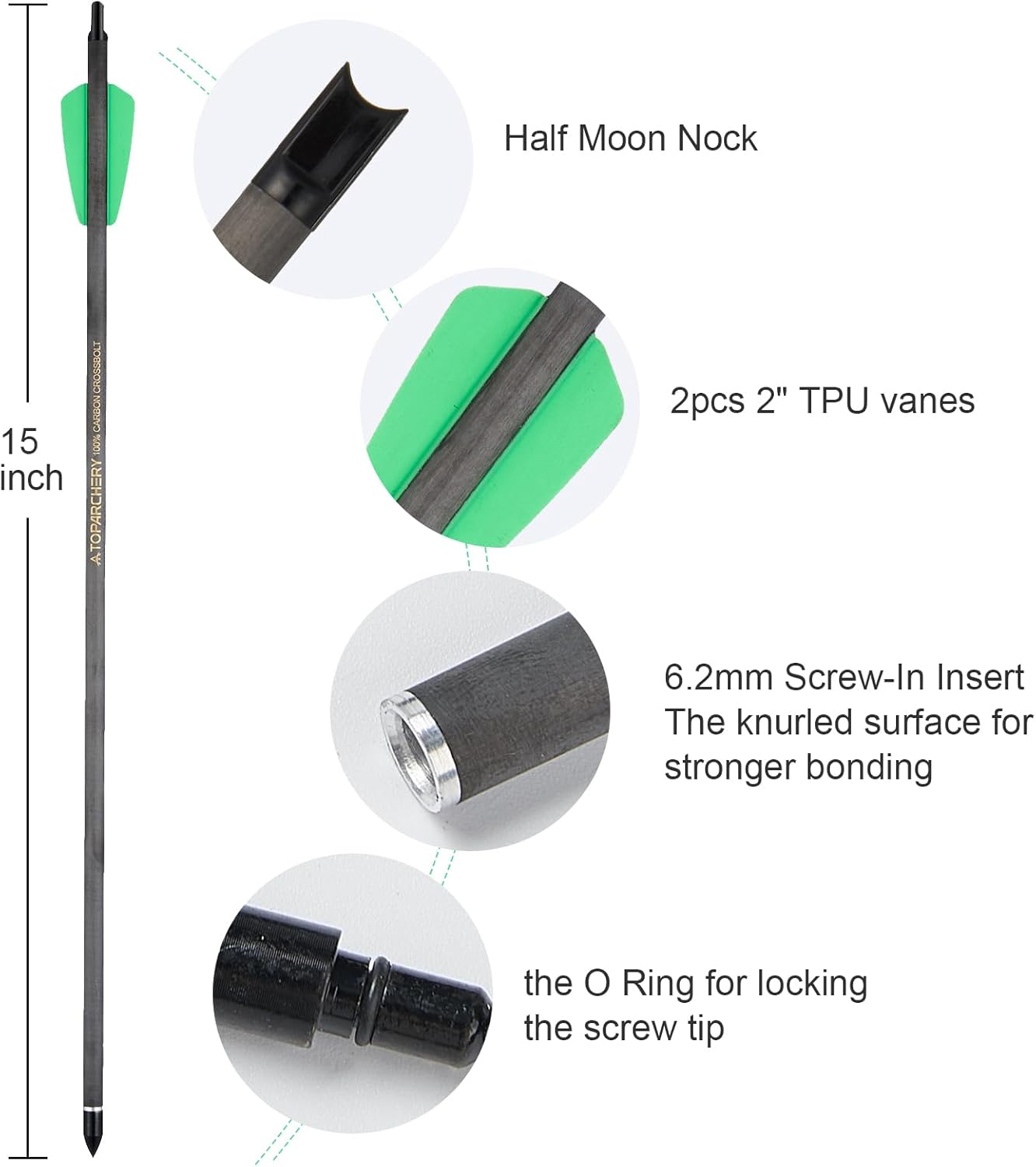 Crossbow Bolts 15 Inch Archery Carbon Crossbow Arrows with Moon Nocks Hunting Archery Arrows(12pcs