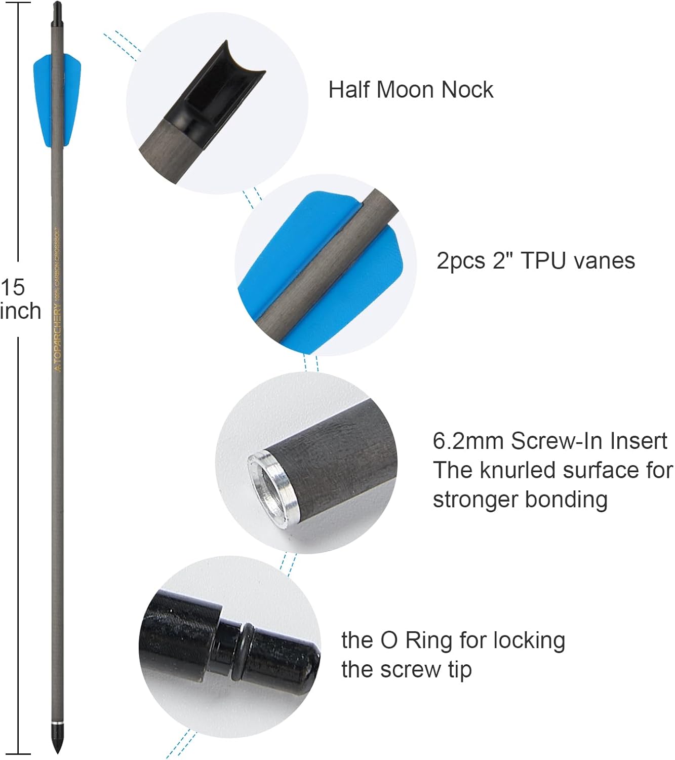Crossbow Bolts 15 Inch Archery Carbon Crossbow Arrows with Moon Nocks Hunting Archery Arrows(12pcs