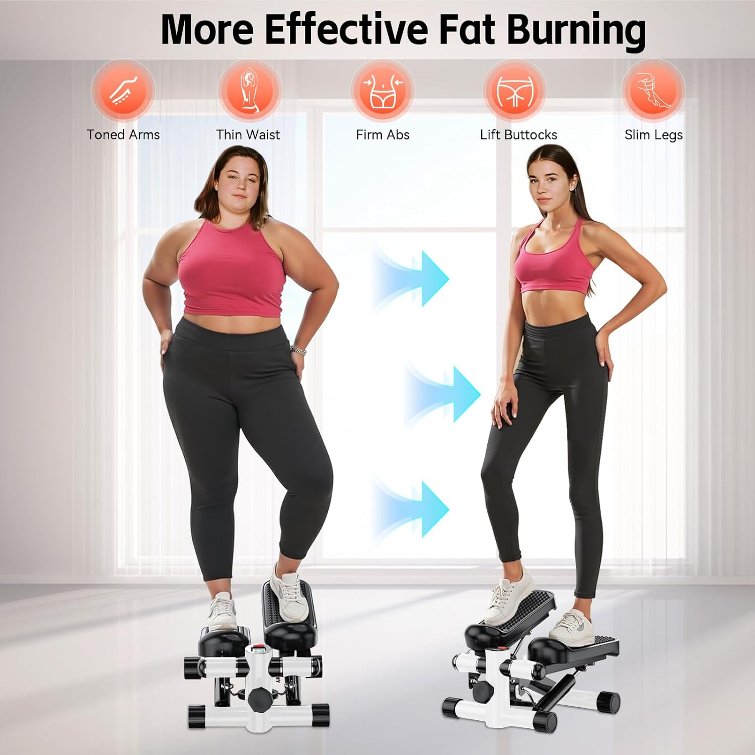 - 【Customizable Stride & Resistance】Uniquely adjustable stride knob (20.5-27.5cm) lets you control intensity. Low for endurance, high for calorie burn – plus detachable resistance bands for full-body toning.
