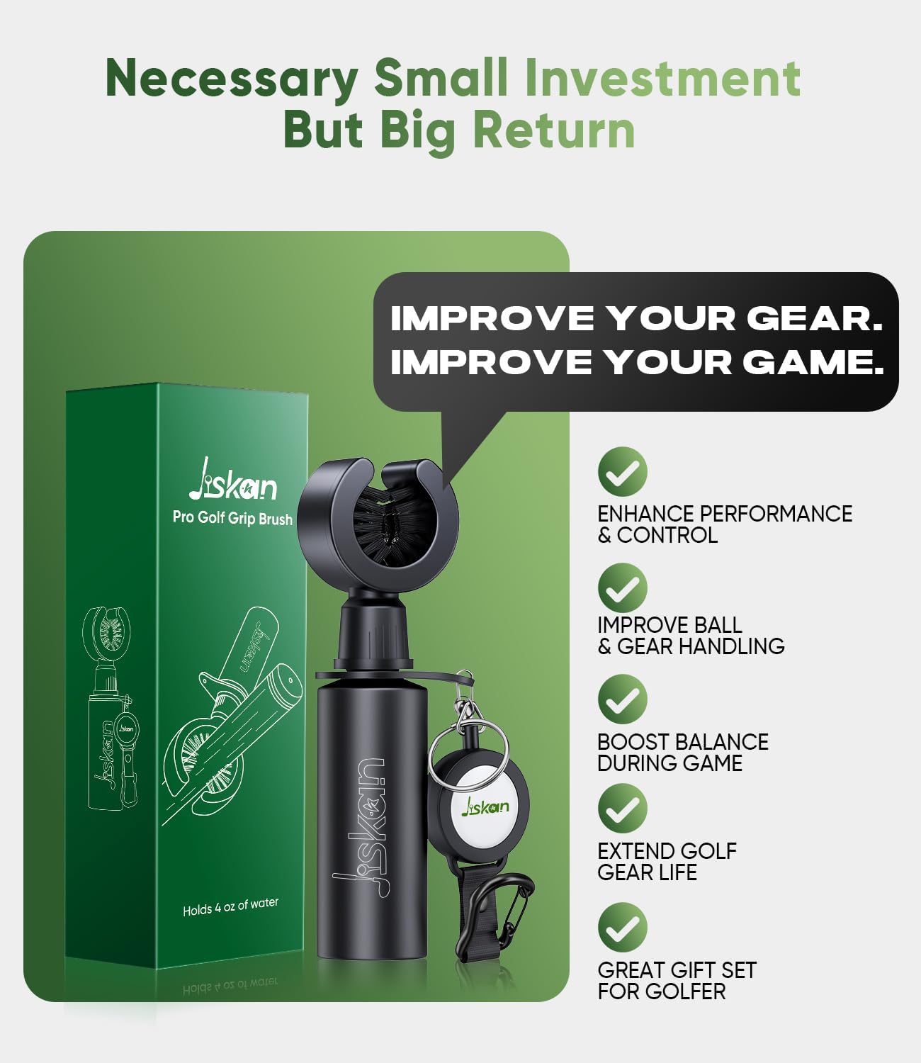 - 【Unique Design Golf Grip Cleaner 】The Jiskan Golf Grip Brush features a built-in 4 oz water bottle. Simply squeeze the bottle to release water as you rotate the brush 360 degrees for a deep clean. For optimal results, just add a drop of soap. This quickly restores your golf grips to peak condition.