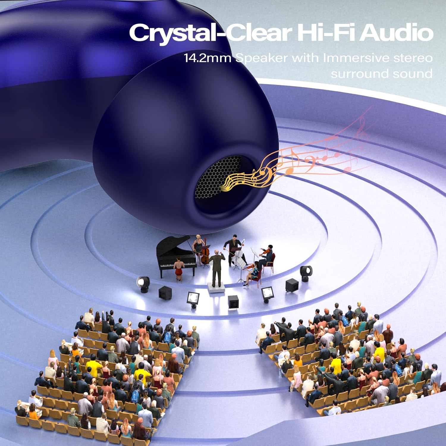 - Bluetooth 5.4 with Instant Auto-Pairing:Featuring the latest Bluetooth 5.4 chipset, the Bluetooth D20 Wireless headphones offers ultra-stable, low-latency connections. Enjoy instant one-step pairing—just open the case and the earbuds automatically connect to your last device. With strong anti-interference capabilities and a wireless range of up to 15 meters, you can move freely around your home or relax in bed without losing audio quality.