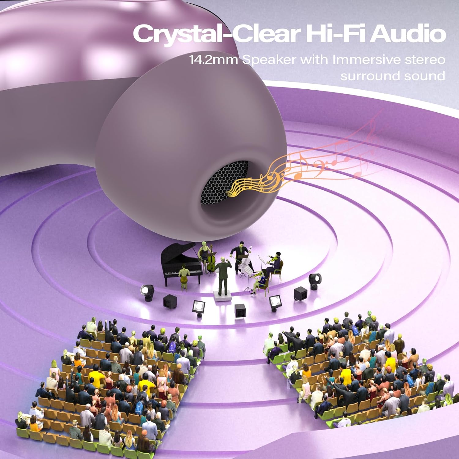 - Bluetooth 5.4 with Instant Auto-Pairing:Featuring the latest Bluetooth 5.4 chipset, the Bluetooth D20 Wireless headphones offers ultra-stable, low-latency connections. Enjoy instant one-step pairing—just open the case and the earbuds automatically connect to your last device. With strong anti-interference capabilities and a wireless range of up to 15 meters, you can move freely around your home or relax in bed without losing audio quality.