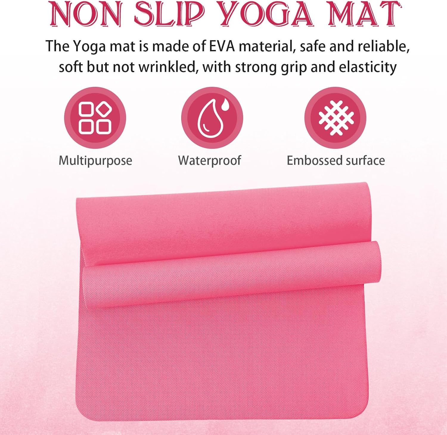- Friendly and Non Toxic: the upgraded latex free yoga mat is made with friendly EVA material; This nonslip EVA yoga mat is non toxic; More durable than regular yoga mats and resistant to tearing and deformation. This product has an odor, is harmless to the human body, and some small holes are normal