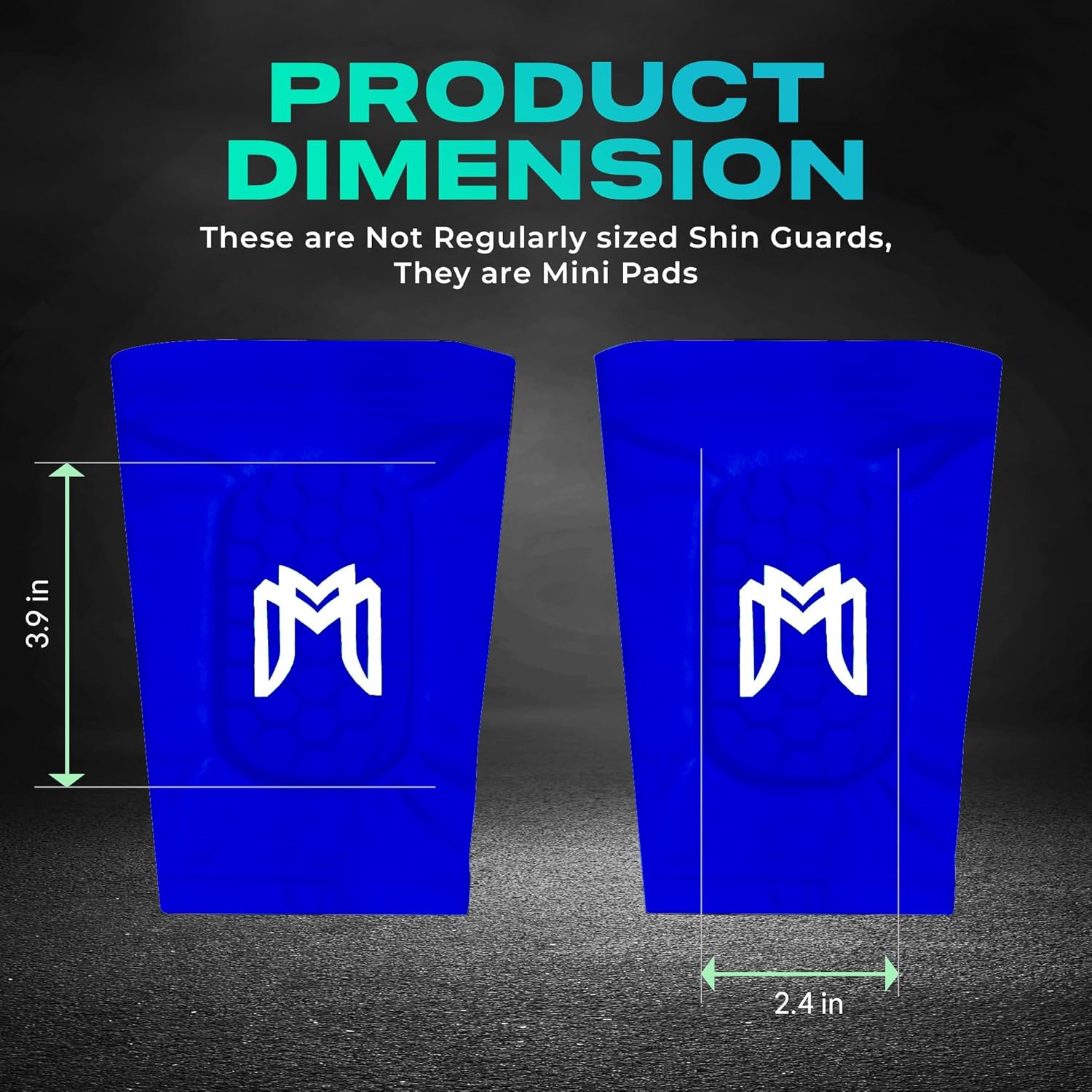 - Sizing: Our shin pad sleeves come in two sizes – Mini and Maxi. The Mini size is 3.9in by 2.4in (10x6cm) and is for high flyers who want very minimal, small shin guards. The Maxi size is slightly larger with a 5.5in by 2.8in coverage zone (14x7cm) and is for players who want to be lightweight while also having decent shin coverage. THESE ARE NOT REGULARLY SIZED SHIN GUARDS, THEY ARE MINI PADS
