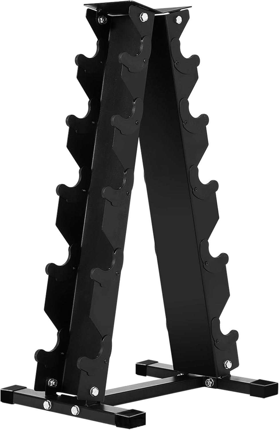 - Space-Saving Rack Included: This PVC coating dumbbell set includes a compact rack with protective rubber edges, a stable triangular frame, and anti-slip foot covers, maximizing space in your home gym while keeping weights organized and easily accessible