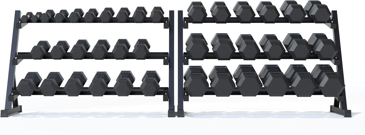 - Space-Saving Storage – The compact, heavy-duty rack organizes your free weights neatly to maximize your workout area, keeping all dumbbell sets easily accessible for quick strength sessions without cluttering your space.
