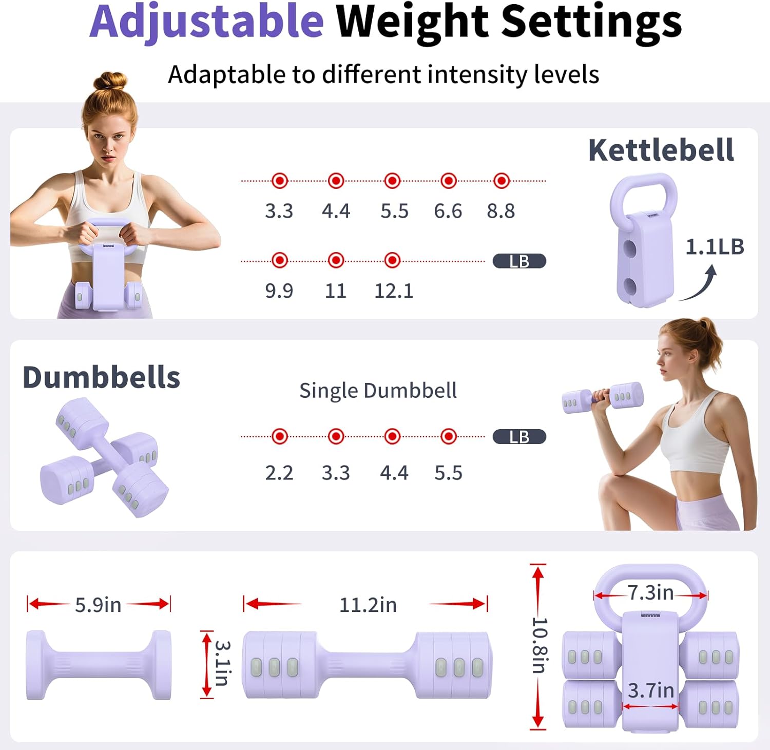 2-in-1 Adjustable Dumbbells Set, 4 Levels Weight Dumbbells Set for Women Men, Each 2.2/3.3/4.4/5.5lb Hand Weights with Kettlebell Form for Home Gym Exercise Training