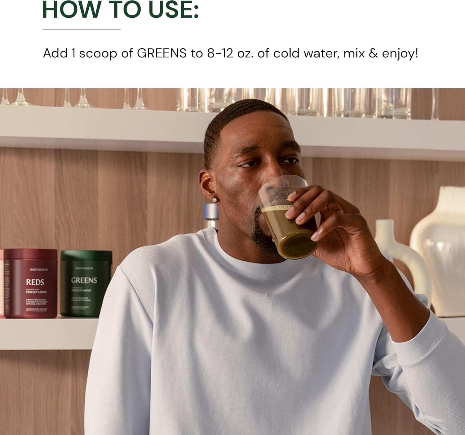 BodyHealth Greens Enhanced with PerfectAmino - Daily Superfood Green Apple Smoothie Powder with Vegetables, Fruit, Antioxidants, Prebiotics, Probiotics, Fiber, and Protein - 40 Servings
