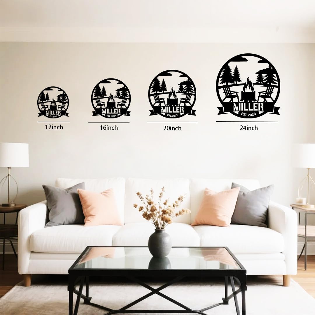 Personalized Campfire Metal Name Sign | Custom Camping Metal Signs | Family Wall Art & Split Letter Name | Wedding Gift & Anniversary | Indoor Decor Gift for Women, Men, Wife, Parents, Couple