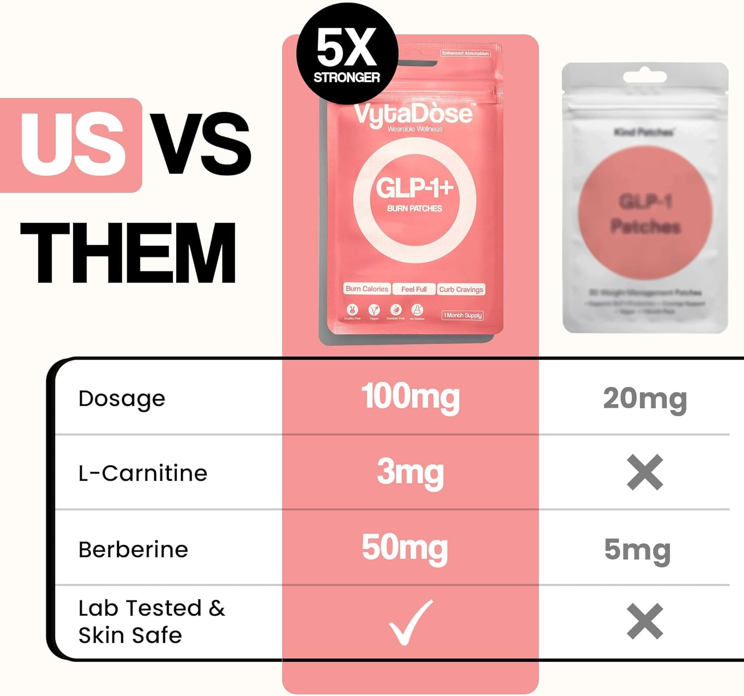 - 5x STRENGTH FORMULA: Formulated 5x Stronger. Vytadose GLP 1 Patches May Assist With Cravings & Hunger Levels, Alongside Healthy Lifestyle