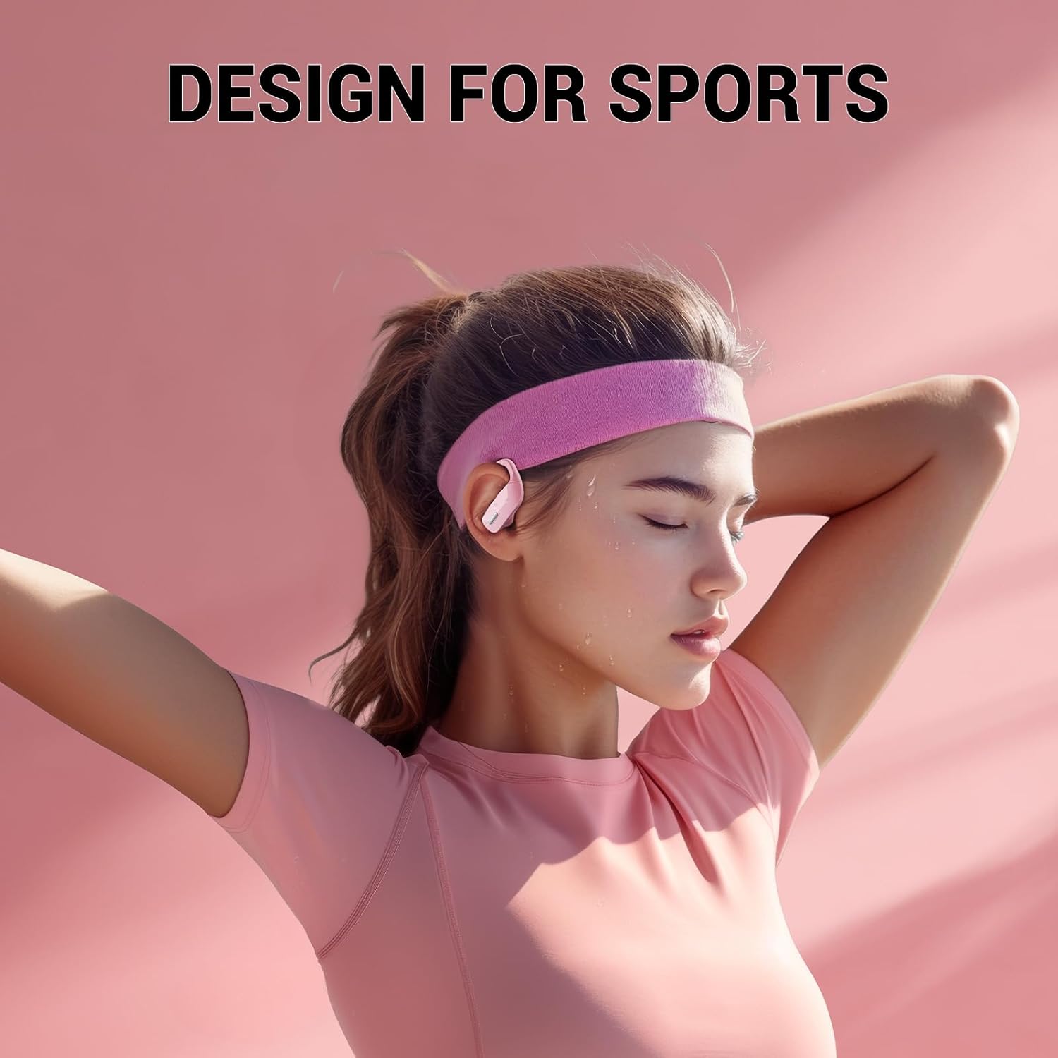 Wireless Sport Earbuds Bluetooth Headphones with Mic 80H Playtime IPX5 Waterproof Ear Buds Deep Bass Earphones Over Ear Headset for Running Gym Workout - Pink