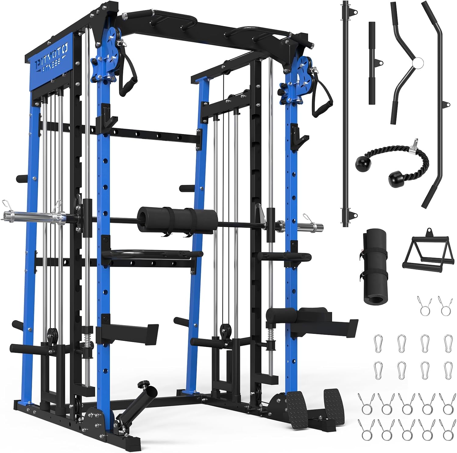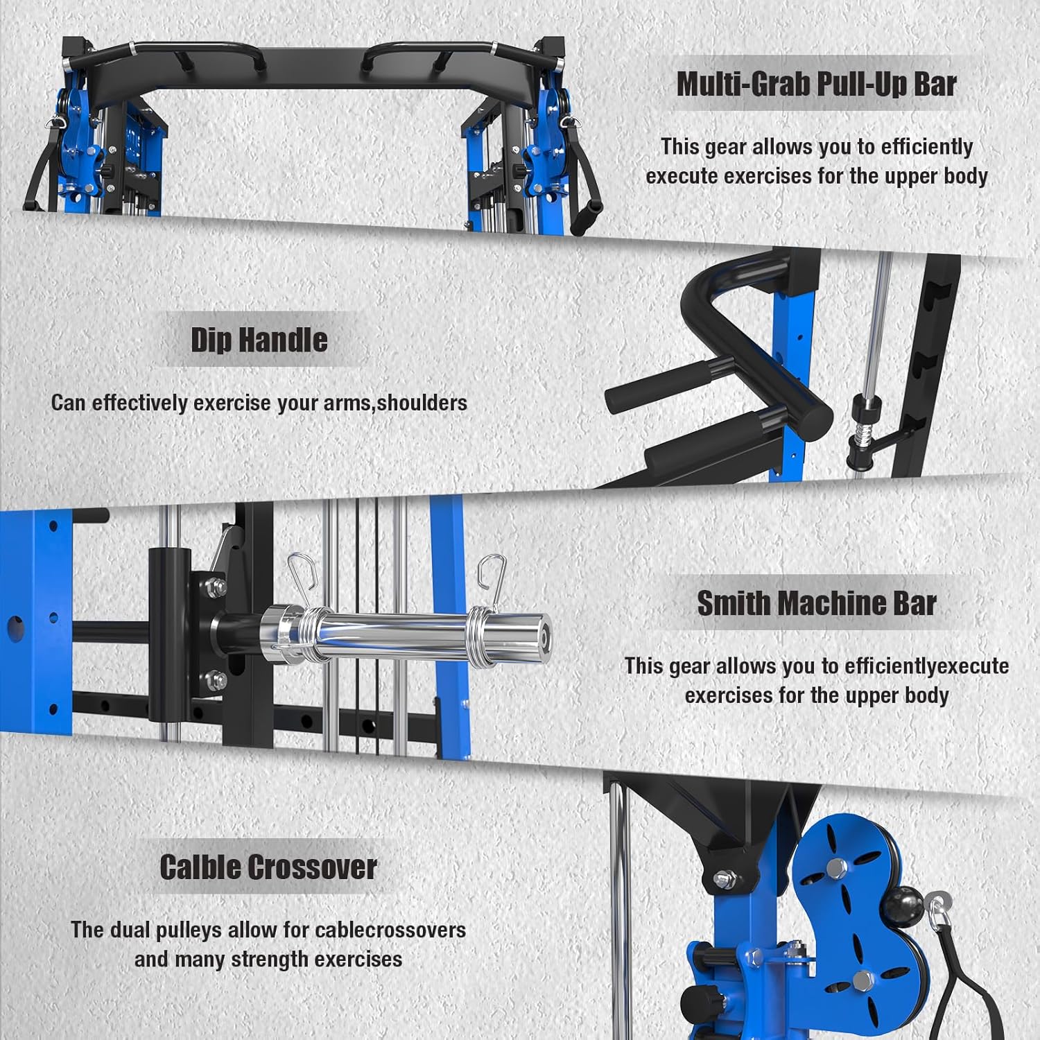- 【Build Your Dream Home Gym】One machine can meet your various needs.It is combined with power cage,smith machine,cable crossover machine,cable station,and pull-up station,providing a complete strength training setup for home use.Perform a wide range of exercises,including squats,cable workouts,pull-ups and more.It is the ideal equipment for full-body strength training,whether it is a fitness beginner or a professional athlete,can meet diversified fitness needs.