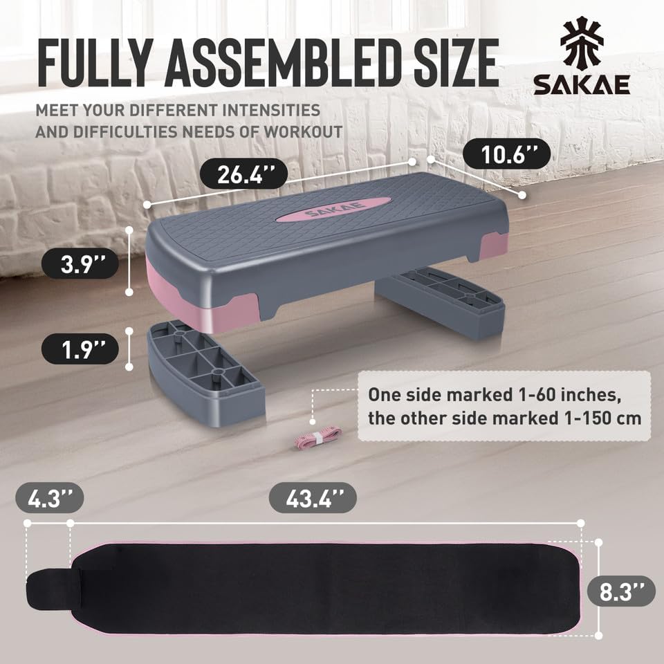 - 2 Level Height Adjustment: Includes 2 risers to easily switch between 4β and 6β heights; supports varied workout intensity to help improve training and burn more calories; features a pink grey stepper; overall size is 26.4β W x 10.6β D x 3.9β5.8β H