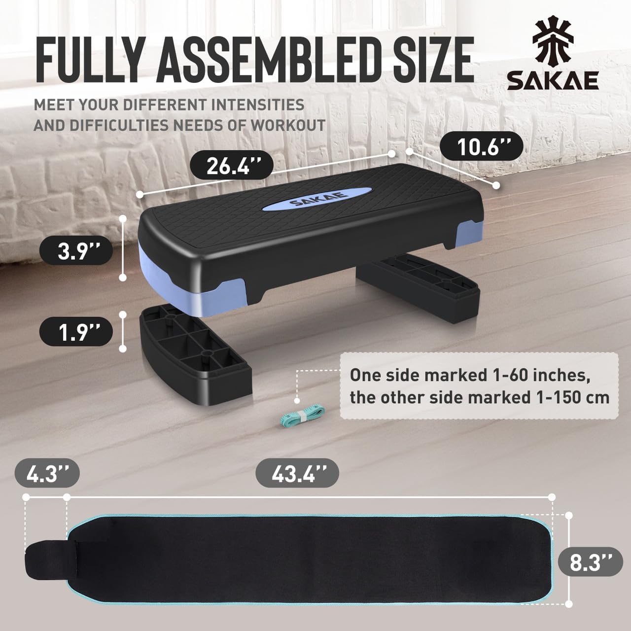 - 2 Level Height Adjustment: Includes 2 risers to easily switch between 4β and 6β heights; supports varied workout intensity to help improve training and burn more calories; features a blue black stepper; overall size is 26.4β W x 10.6β D x 3.9β5.8β H