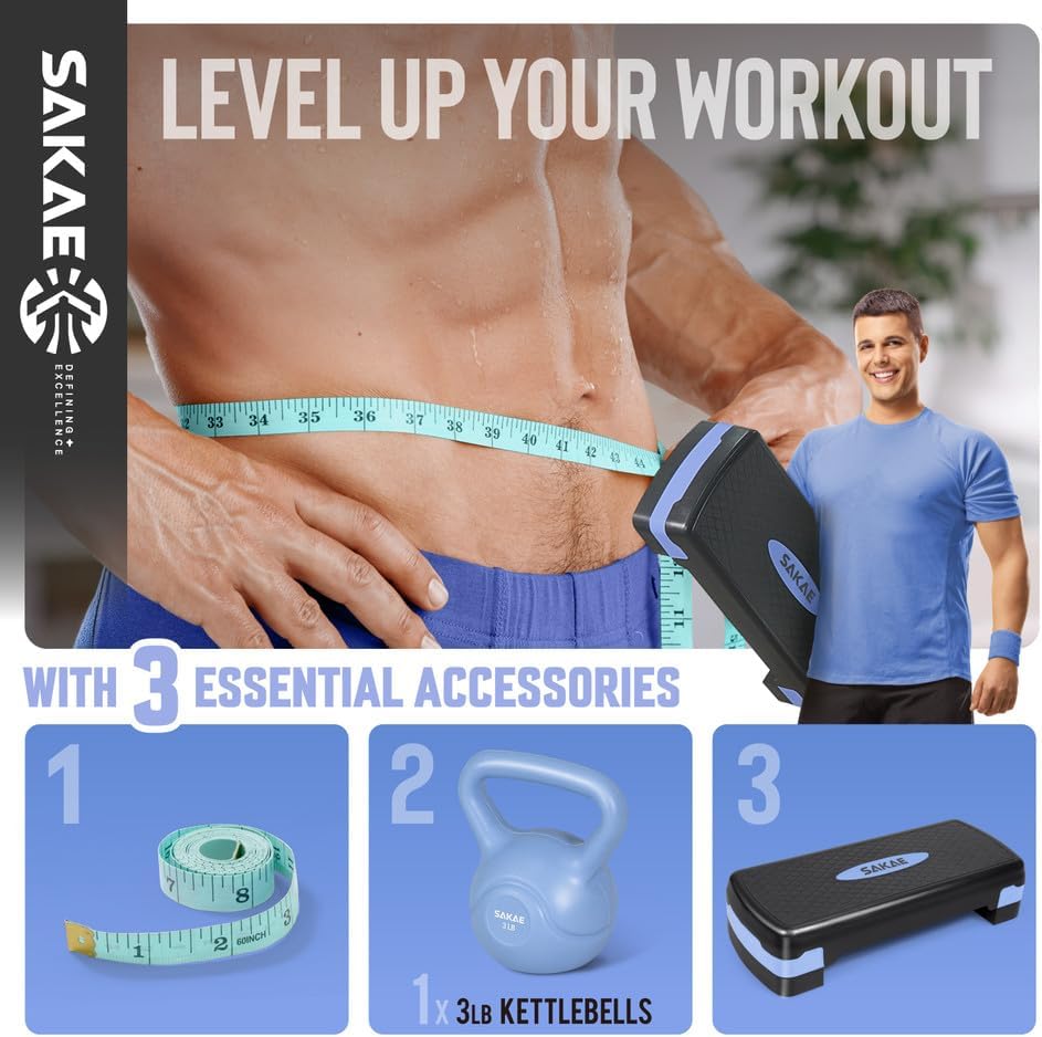 - Multi-Purpose Workout Set: Stepper boosts endurance and enhances calorie-burning workouts; 3 lb kettlebell adds resistance to build strength and improve overall fitness; includes measuring tape to track progress and stay focused on your training goals